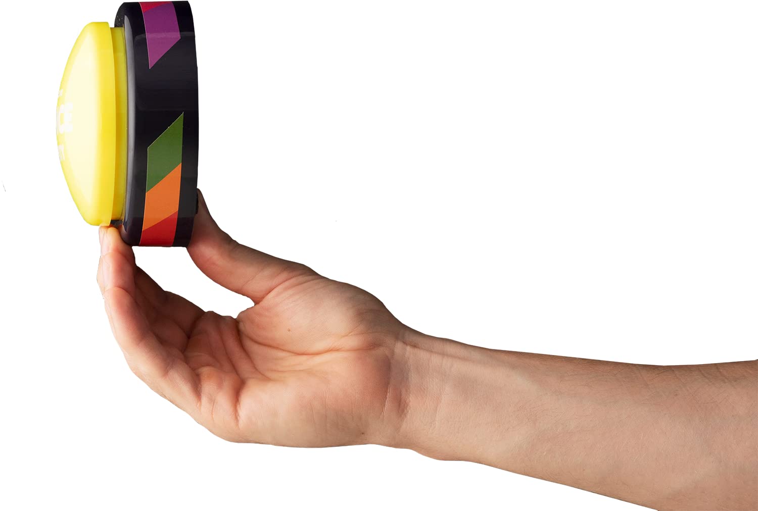 Details: This is the most innovation we've ever put into a dance party button. Big button, pulsing sound, top that lights up to the beat.