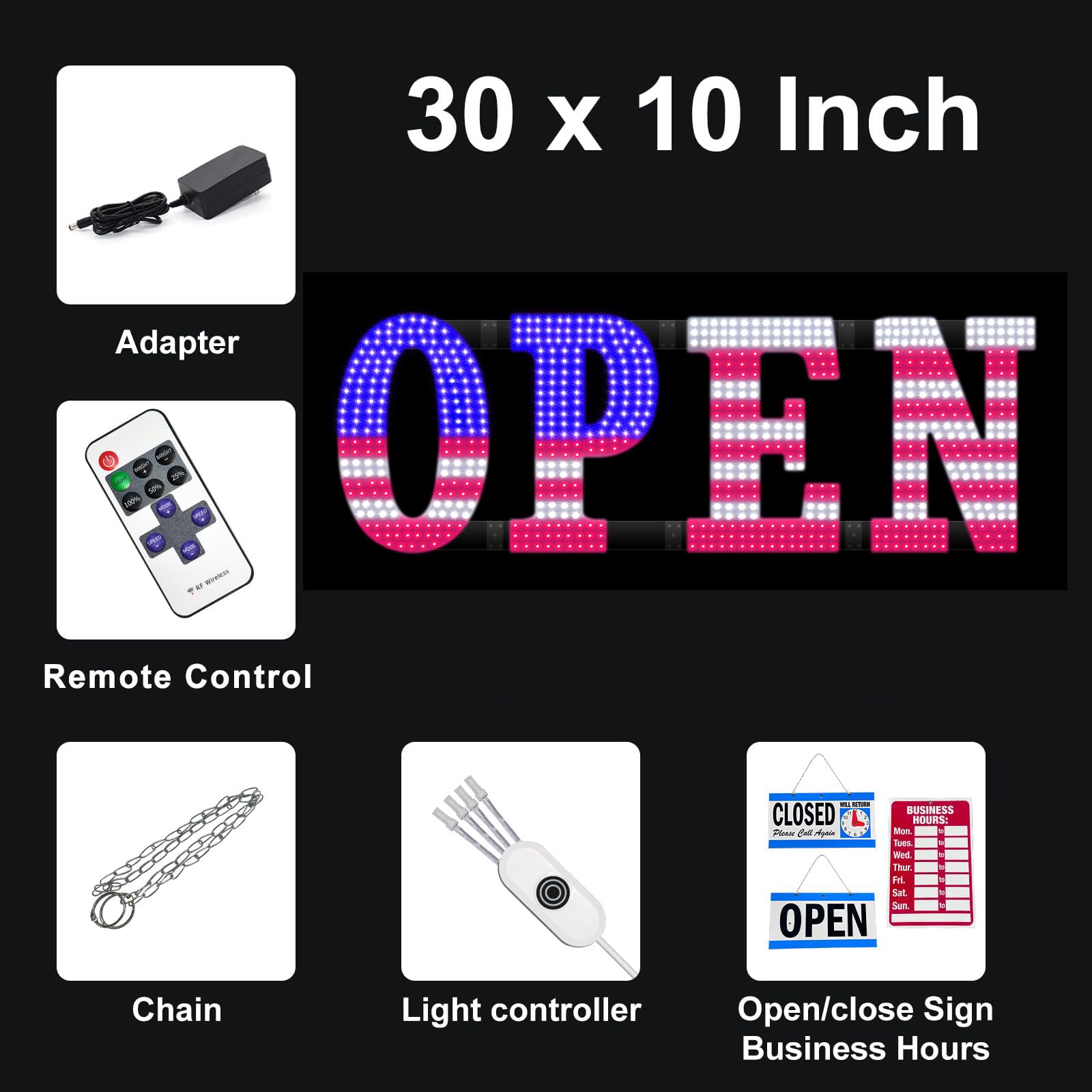30'' x 10" Led Open Sign with Remote Control and Adjustment Brightness & Speed - 14 Mode, Large Open Closed Sign for Bar Store Restaurant Office Hotel Salon USA Flag