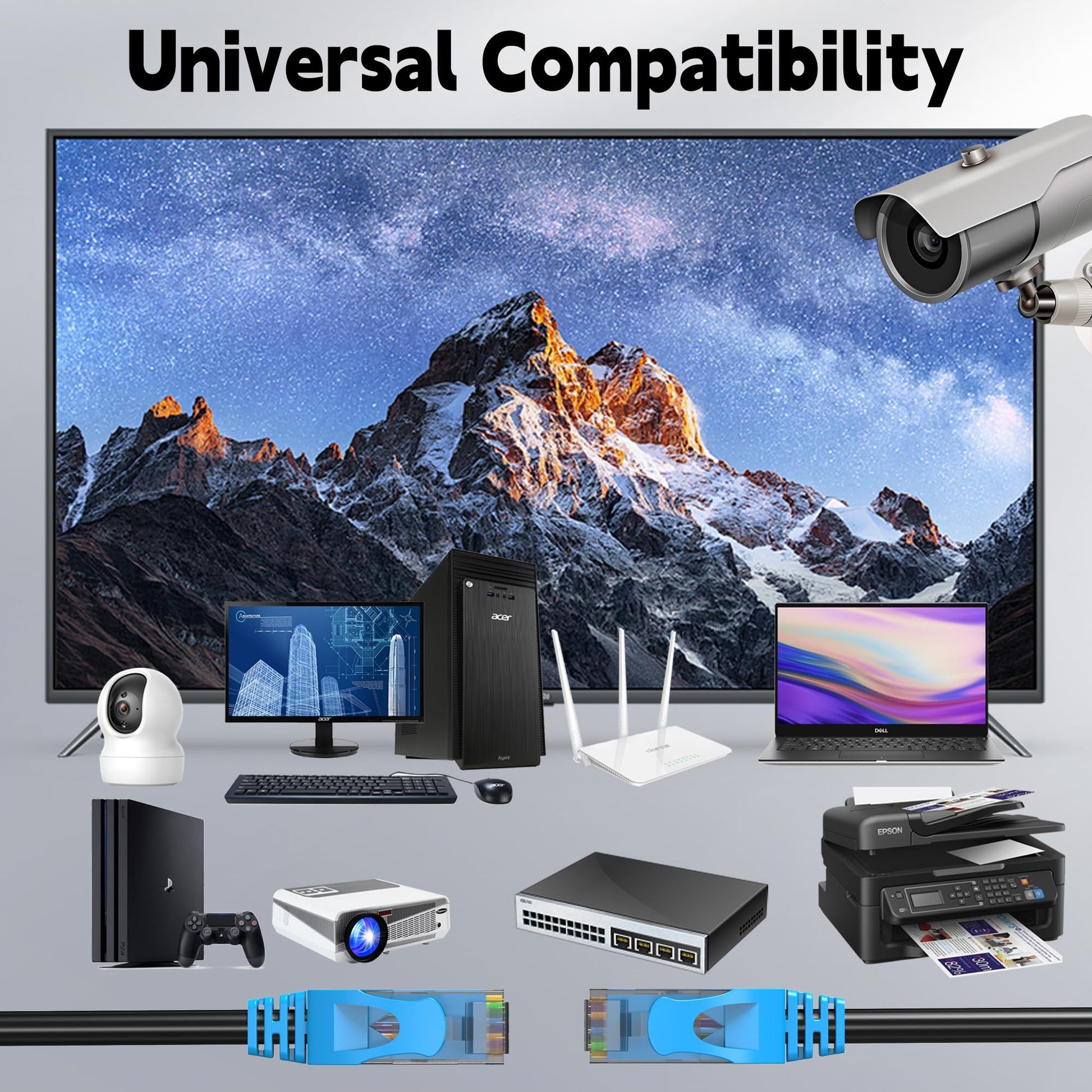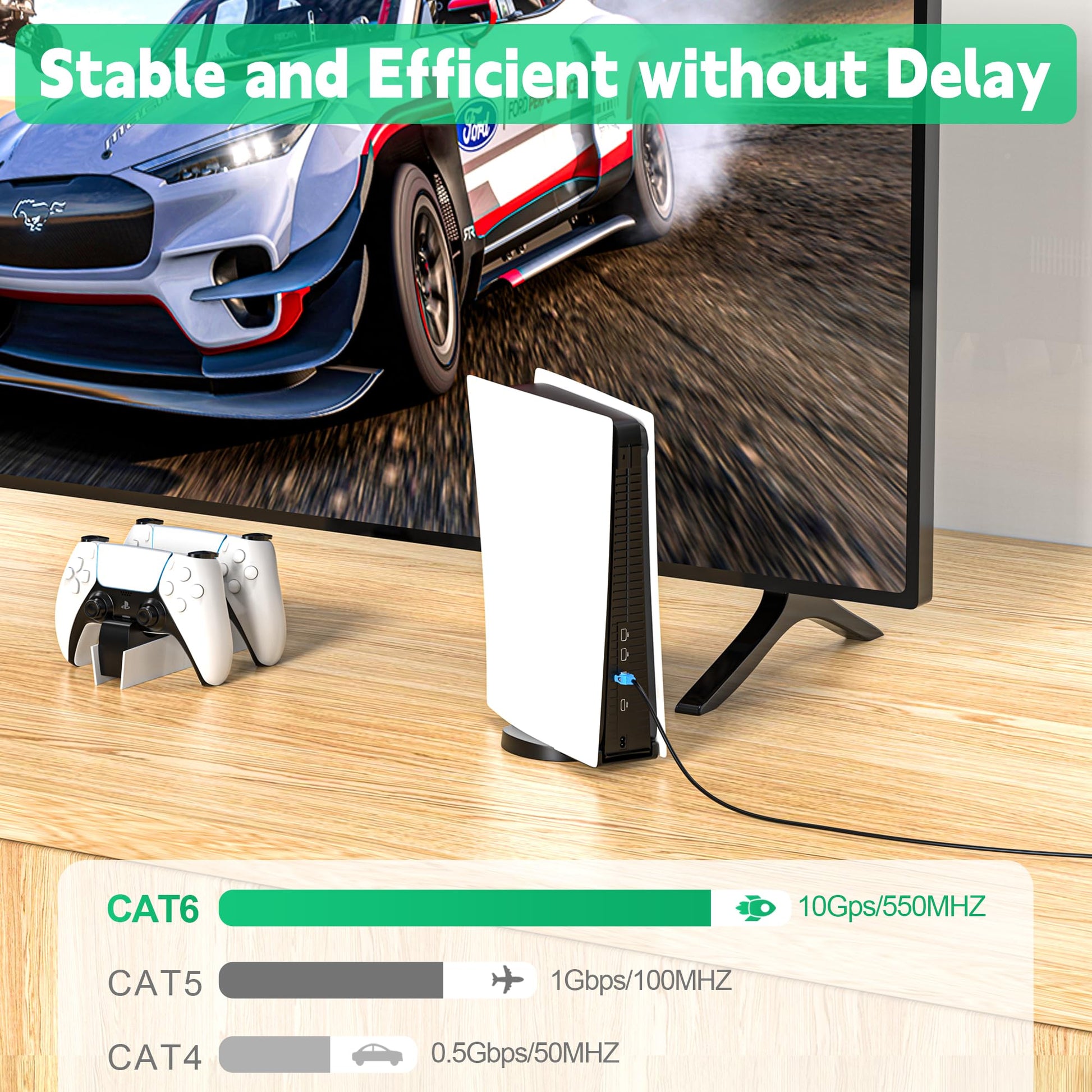 - Wide Array of Applications: Compatible with office, gaming and home devices. Backward compatible with Cat5e and Cat5. Compatible with PlayStation 3, PS4, PS5, Xbox, network adapter, hub, router, modem, etc. Provide you with the ultimate data, audio and video experience