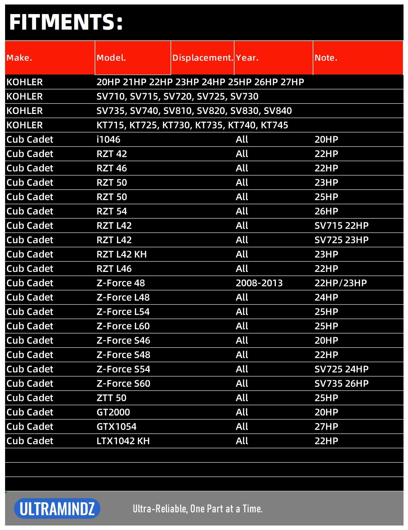 - Starter for Cub Cadet Mowers-Zero Turn All Years i1046 20HP/ RZT42 RZT46 RZT-L46 22HP/ RZT50 23HP 25HP/ RZT54 26HP/ RZT-L42 SV715 22HP SV725 23HP/ RZT-L42 KH 23HP; Z-Force 48 22HP 23HP 2008-2013/ Z-Force L48 24HP All/ Z-Force L54 Z-Force L60 25HP/ Z-Force S46 20HP/ Z-Force S48 KH 22HP/ Z-Force S54 SV725 24HP/ Z-Force S60 KH SV735 26HP; ZTT50 25HP/ GT2000 20HP/ GTX1054 27HP/ LTX1042 KH 22HP.