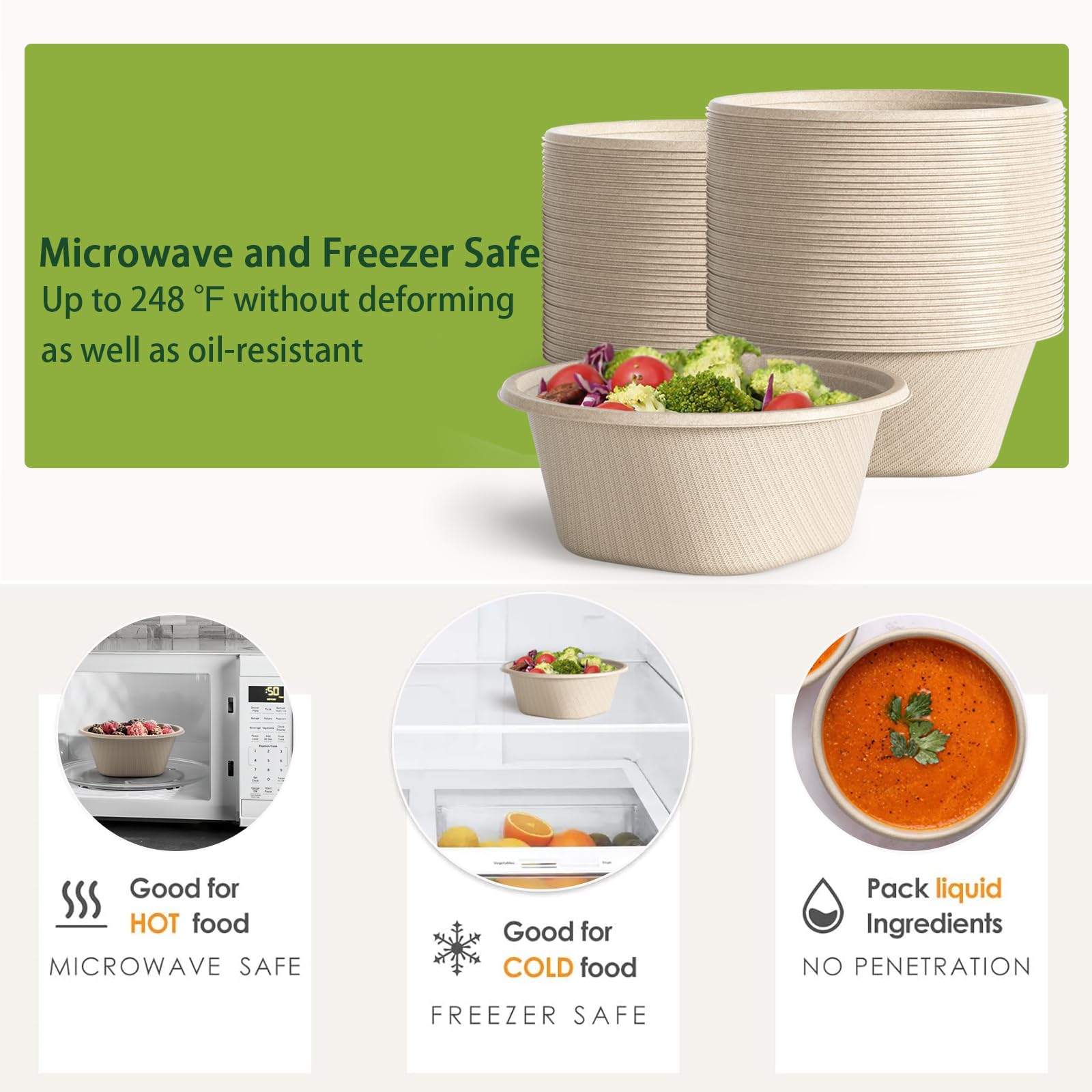 - â ăFreezer & Microwave Safeă Our bowls disposable heavy duty are microwave and freezer safe, they can be used for hot and cold food. These disposable bowls for hot soup have good oil-resistant, heat-resistant, and cut-resistant. When you use them, you don't need to worry about them breaking.