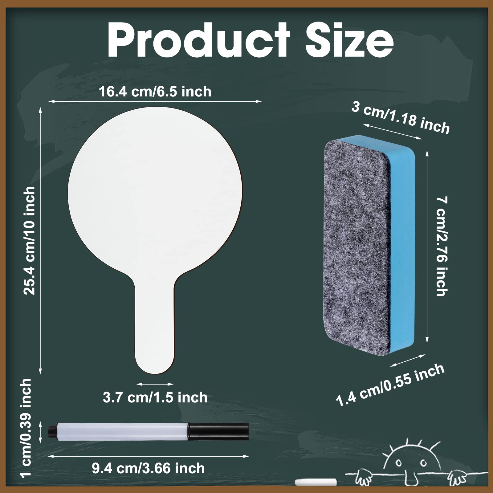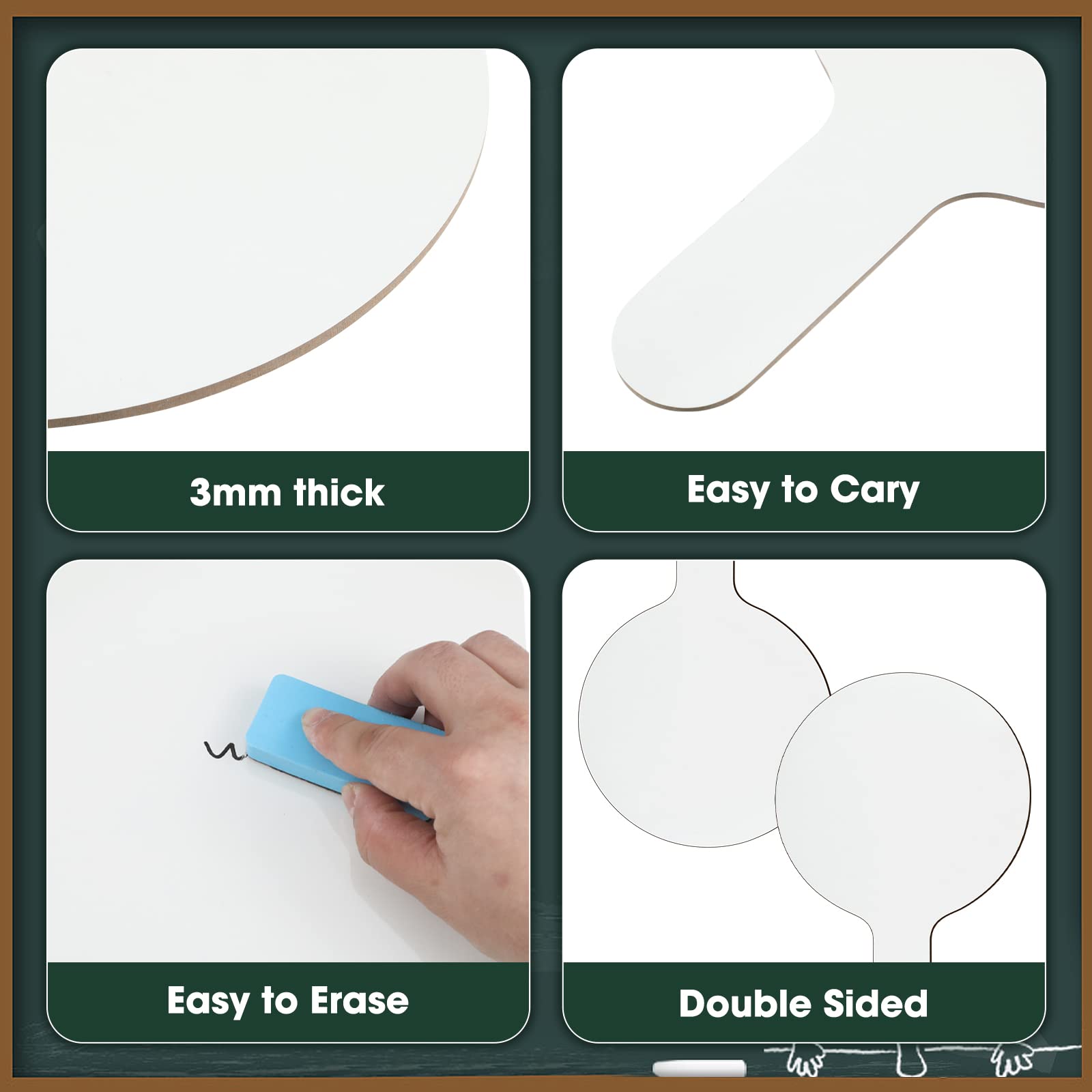 32 Pack Dry Erase Paddles White Answer Board Bulk Double Sided Board Plastic Handheld Paddle Set with Whiteboard Pens and Whiteboard Erasers for Students Classroom Voting Bidding Answering (Round)