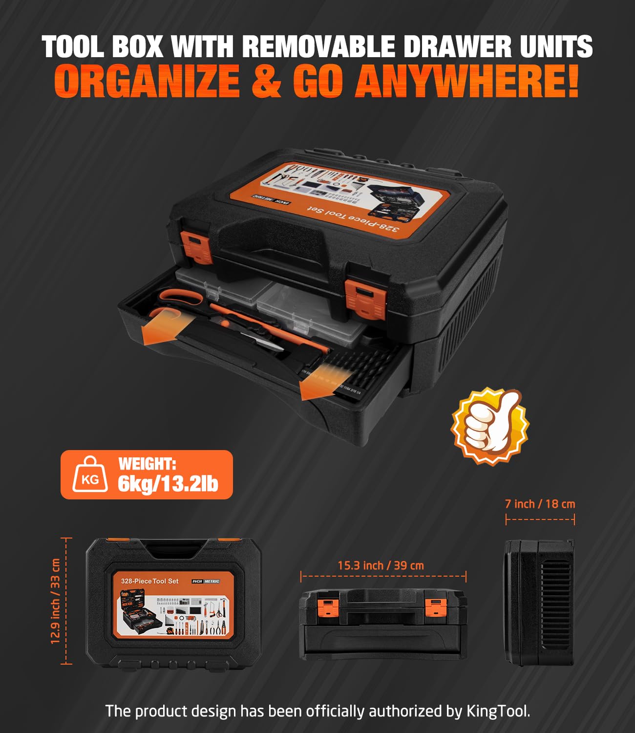 328-Piece Tool Set - Tool Kit Toolbox Storage Case with Drawer, General Household Hand Tool Kit Perfect for Home & DIY Repairs