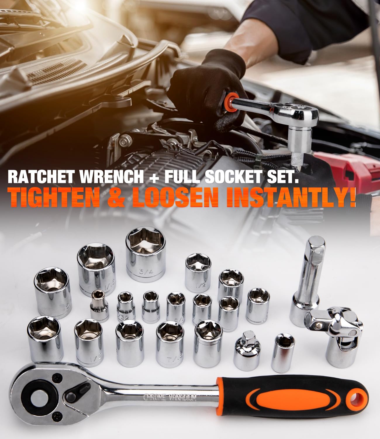 - [Complete Set with Essential Tools] The 328-piece tool set features a wide variety of essential tools, including 1/4-inch and 3/8-inch sockets, precision screwdrivers, pliers, and more. The set also includes a 45-tooth ratchet and a selection of screwdriver bits in multiple sizes. Soft-grip handles on screwdrivers, pliers, and hammers ensure comfort and better control, making every job easier and more efficient.