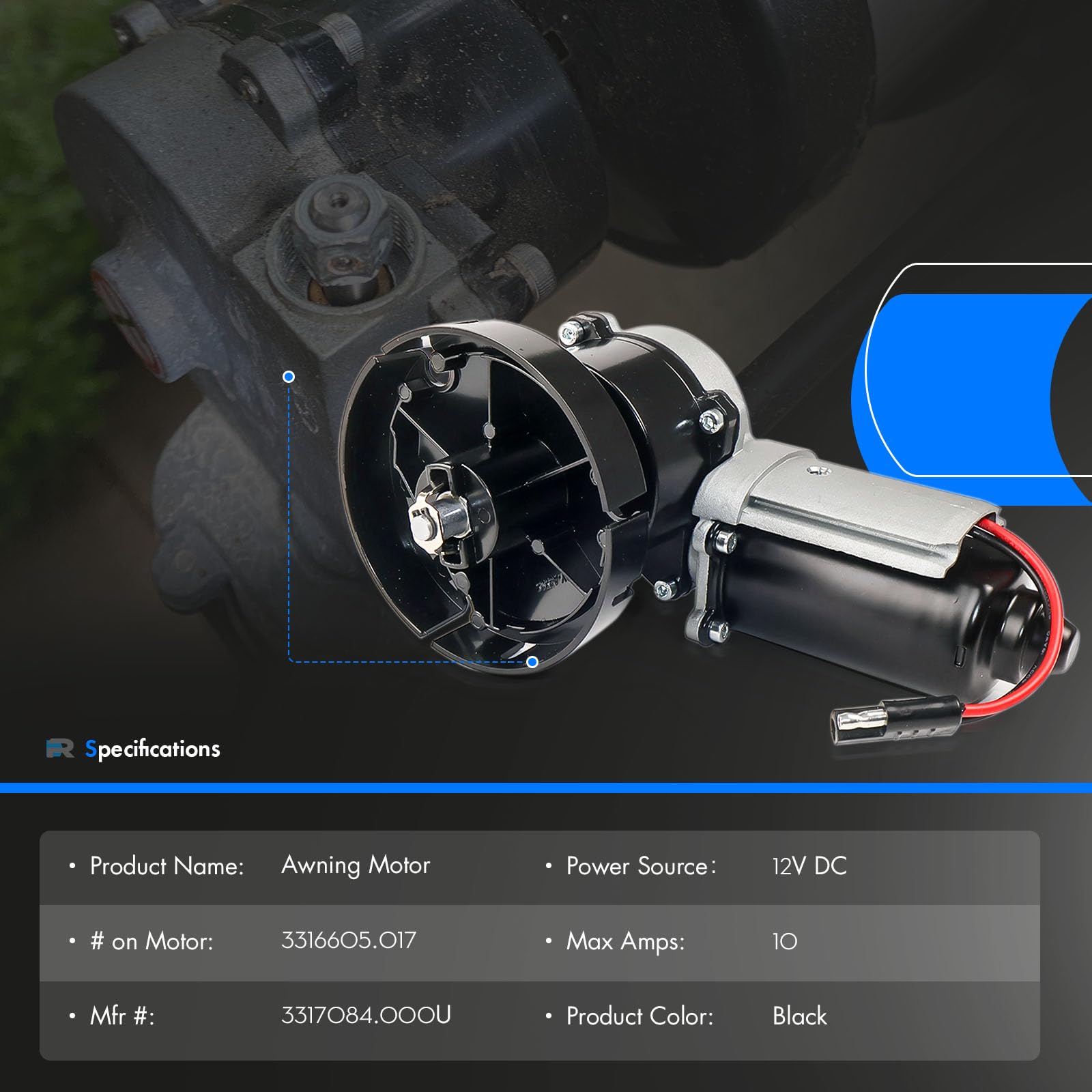 3317084.000U RV Awning Motor Drive Repair Kit Assembly Fit for Dometic 9200 Series Power Awnings, Replace# 3316605.001, 3316605.017, Black