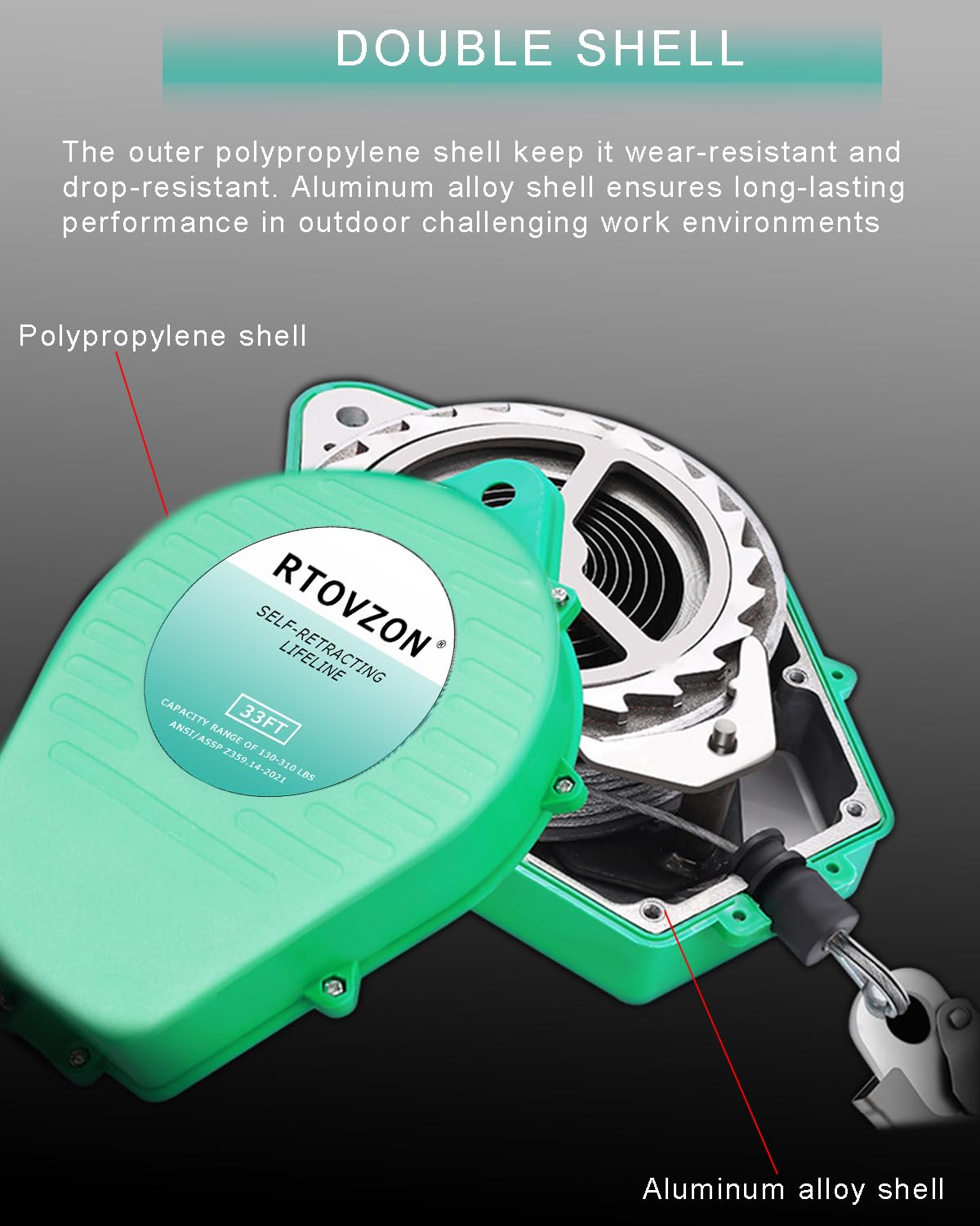 - 【QUICK BRAKE FALL PROTECTION SYSTEM】: The dual locking pins provide stronger and faster fall arrest ability in braking system. Dual locking pins enable locking at a critical speed of 3.3FT/S with a locking distance of less than 0.65FT.
