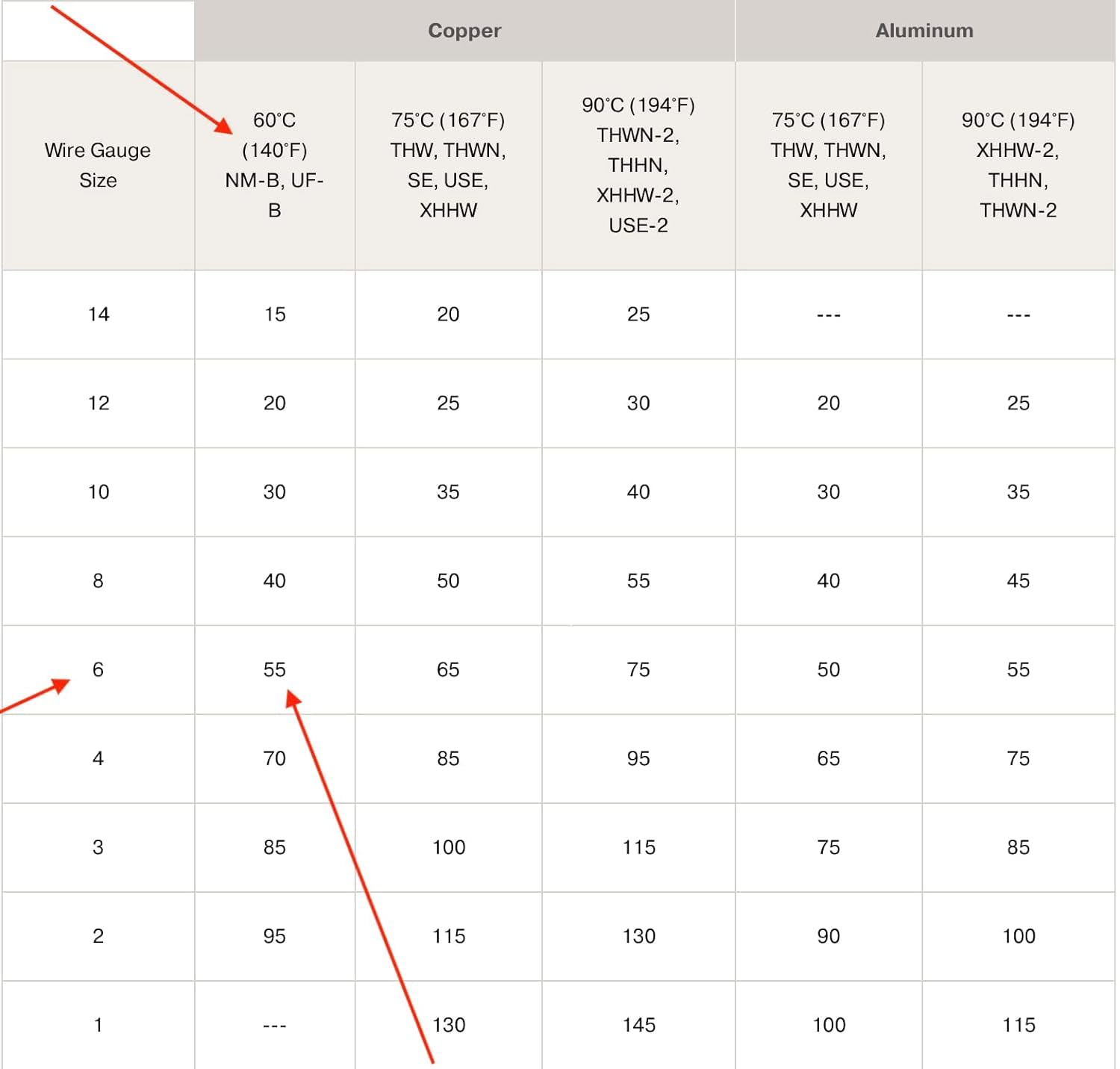 - 35 feet of 6/3 type NM-B copper wire with a #6 AWG gauge