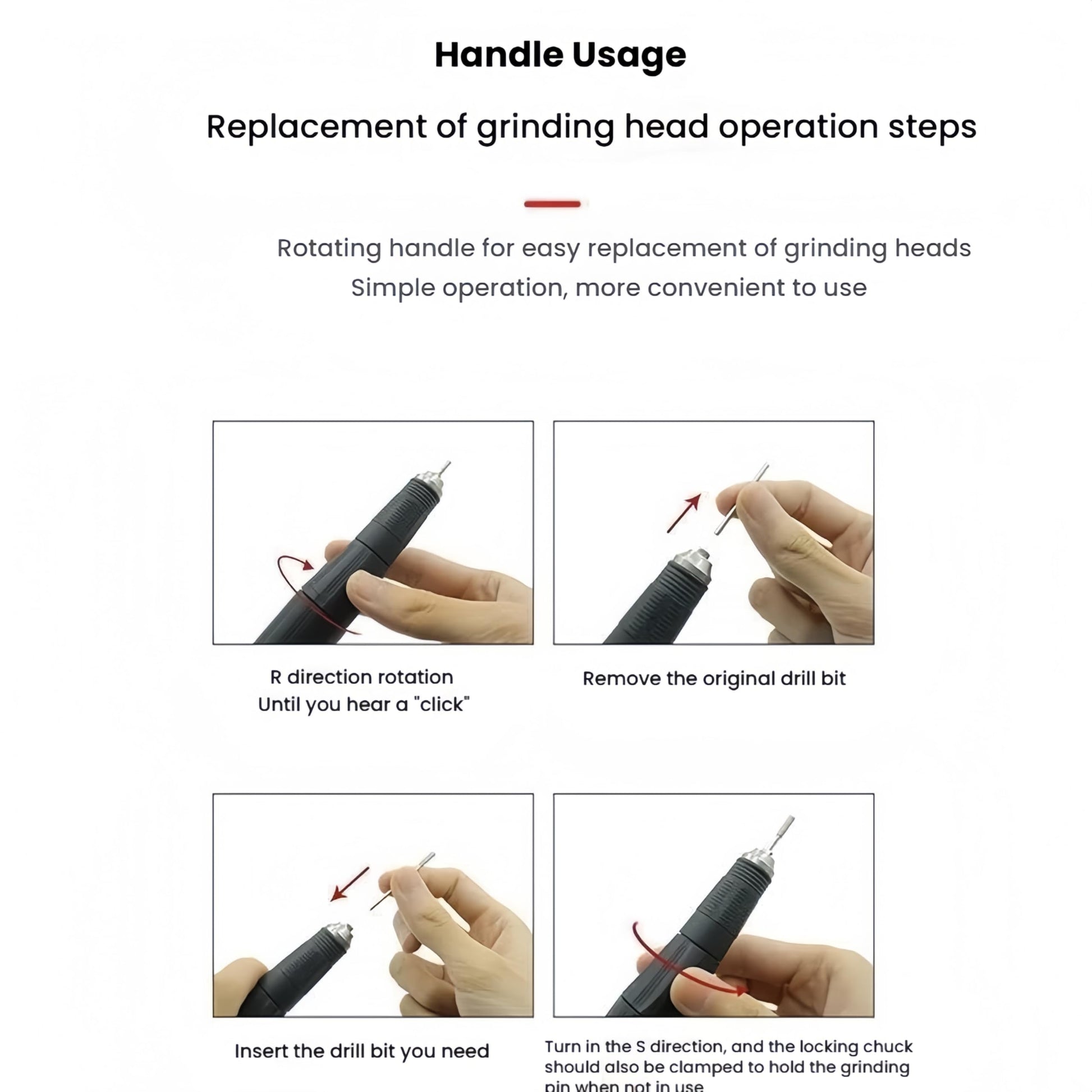 - 【Rapid Drill Bit Replacement】A specialized locking ring mechanism allows swift and tool-free bit changes, boosting workflow efficiency and adaptability across diverse polishing, carving, and engraving tasks.
