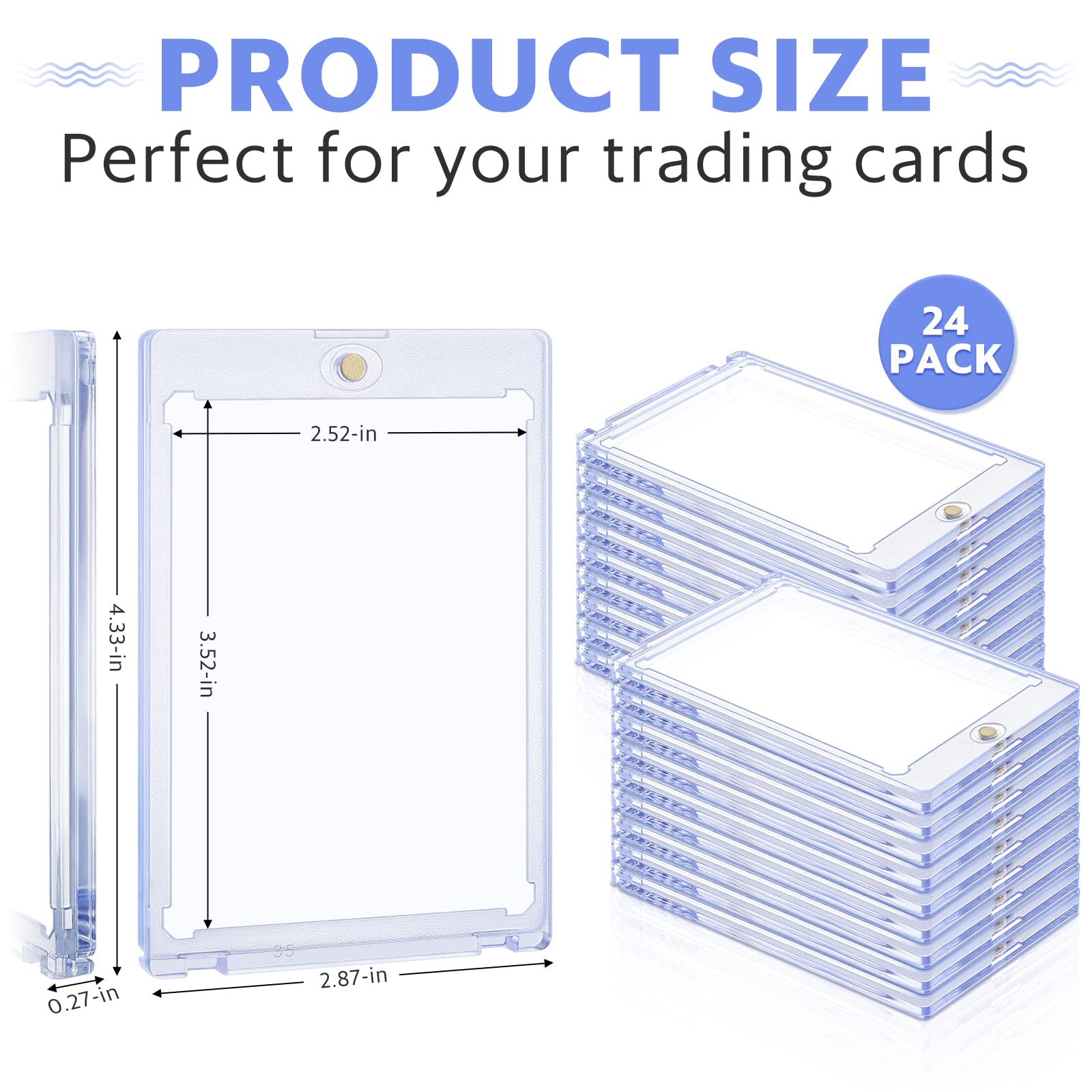 - π Product Dimensions - You will receive 60 pack magnetic card holders 35pt. The 35pt magnetic card holder measure 2.52 x 3.52 inches inside and 2.87 x 4.33 inches outside.