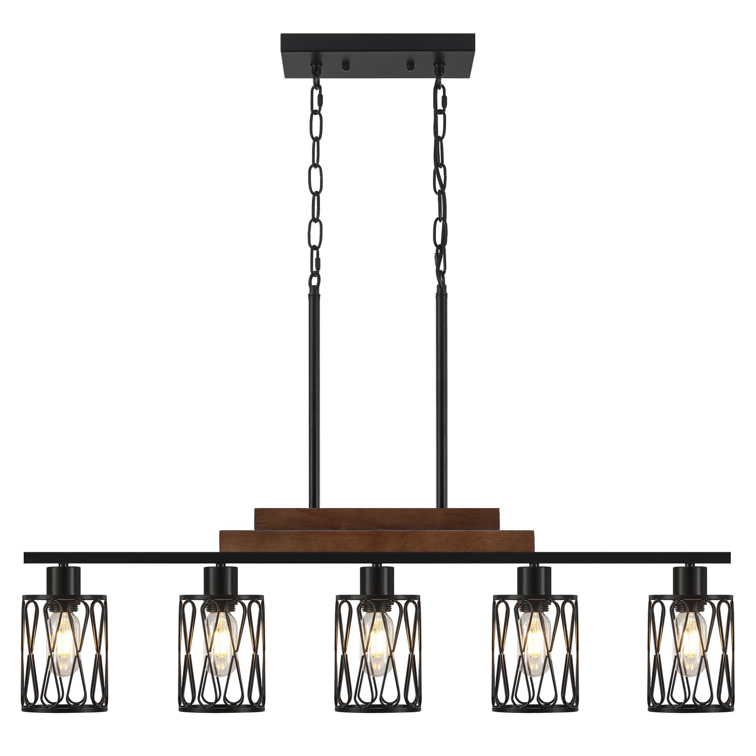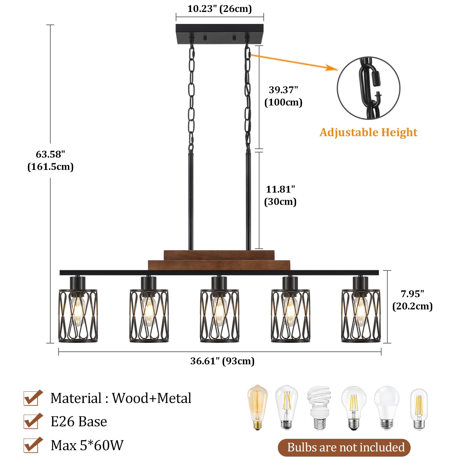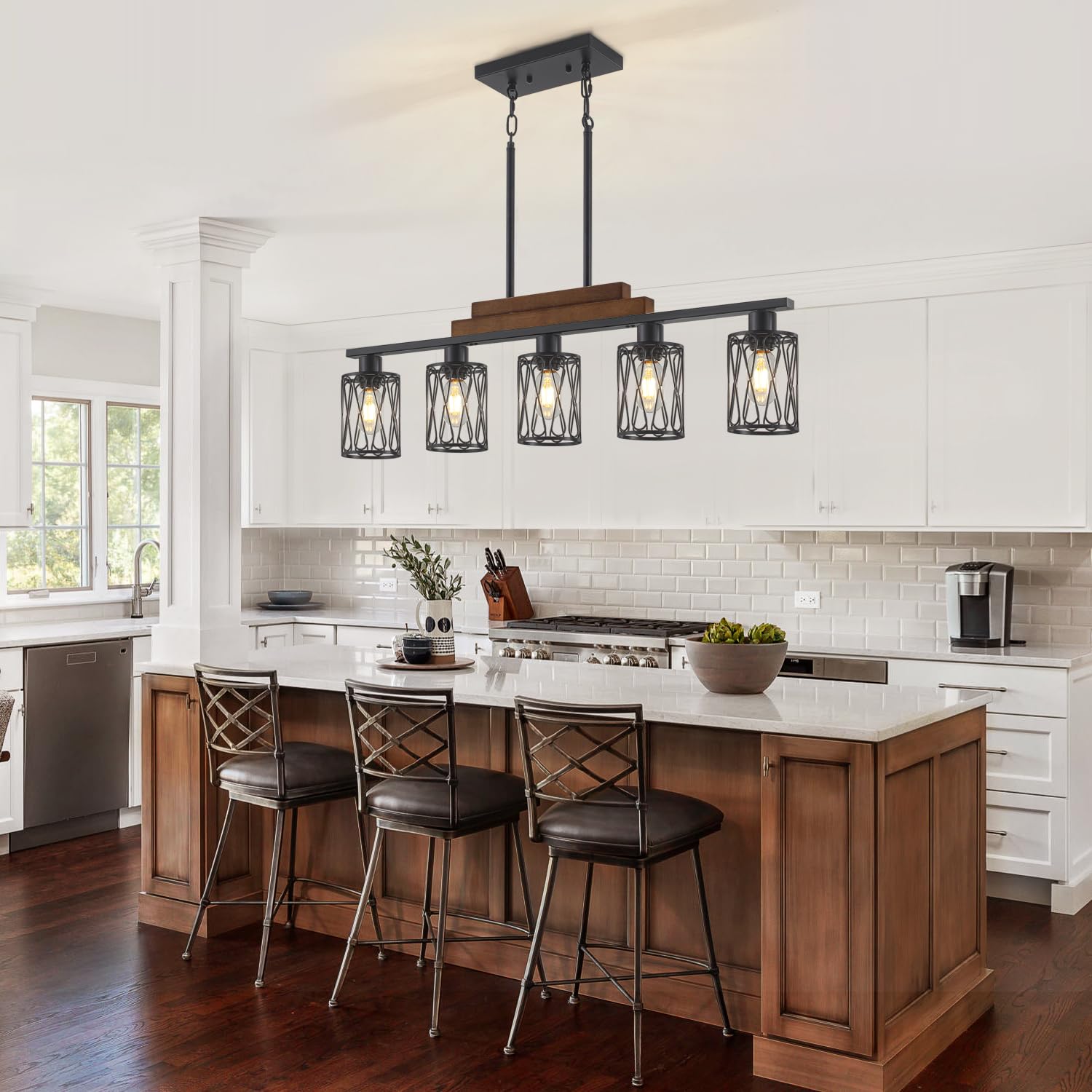 - ✅MODERN FARMHOUSE DINING ROOM LIGHTS--Blend rustic charm with industrial edge! The dining room light fixture features a striking combination of solid wood accents and black metal cage shades, embodying the core of farmhouse aesthetics while injecting a hint of modern industrial charm.Kitchen island lighting creates a versatile design that complements modern,industrial,farmhouse,and Scandinavian interiors.The chandeliers for dining room open-cage design of the lamp shades not only accentuates the warm radiance of style bulbs (bulbs are not included) but also delivers a captivating visual allure, ensuring it becomes a prominent focal point in any room.