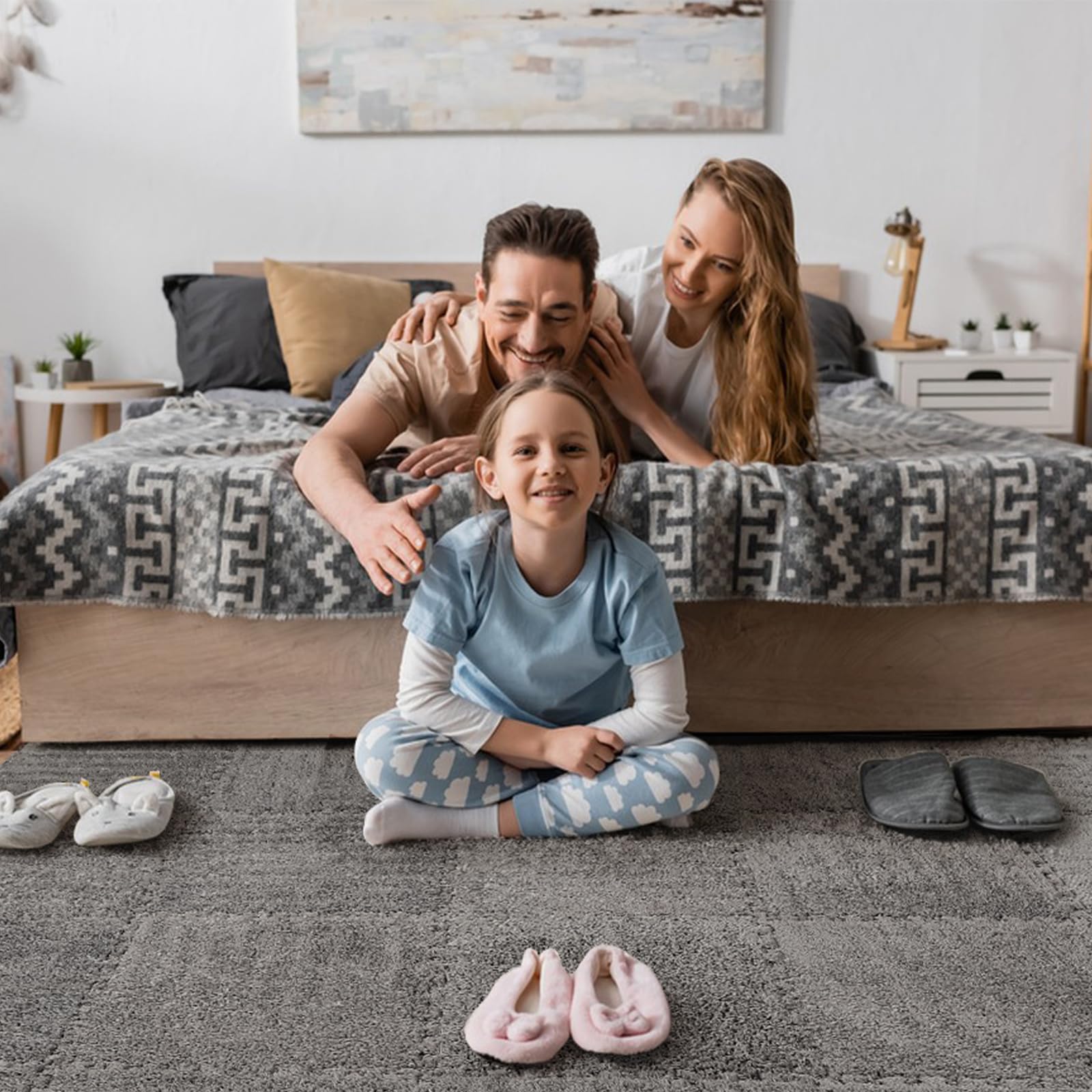 - DESIGNED FOR KIDS: Each piece of plush interlocking carpet tiles is made of thick EVA foam and covered with soft and cozy coral velvet. It is non-toxic and harmless, suitable for baby's room, which can greatly reduce injuries caused by infant falls. This way you can make sure your child is playing in a safe environment