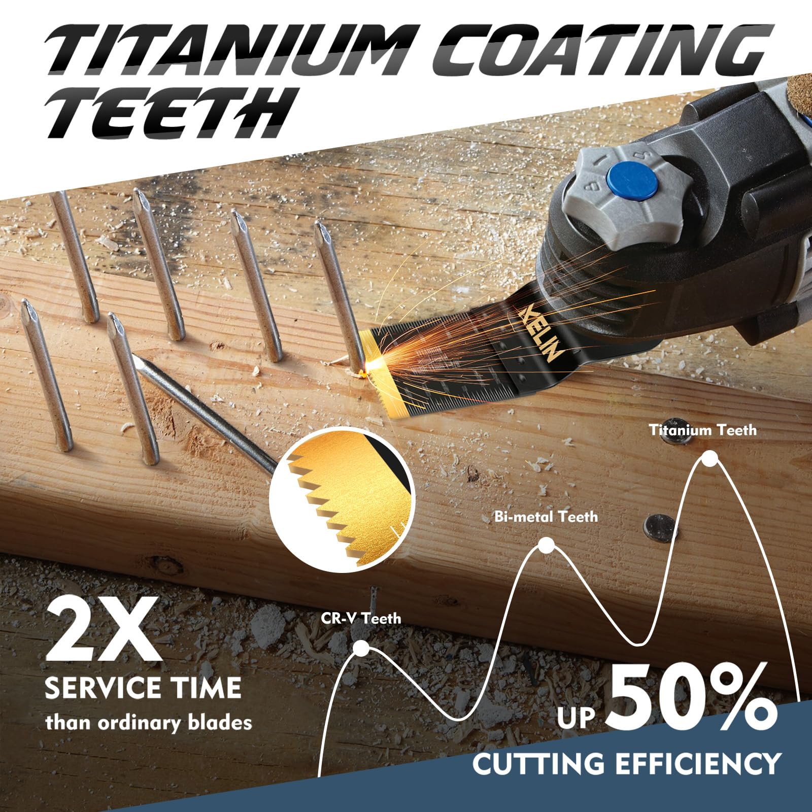 - 【Seller Tips】Avoid cutting screws and bolts with this blade. Steel is too hard for titanium-coated blades. For steel cutting, choose our carbide oscillating tool blades
