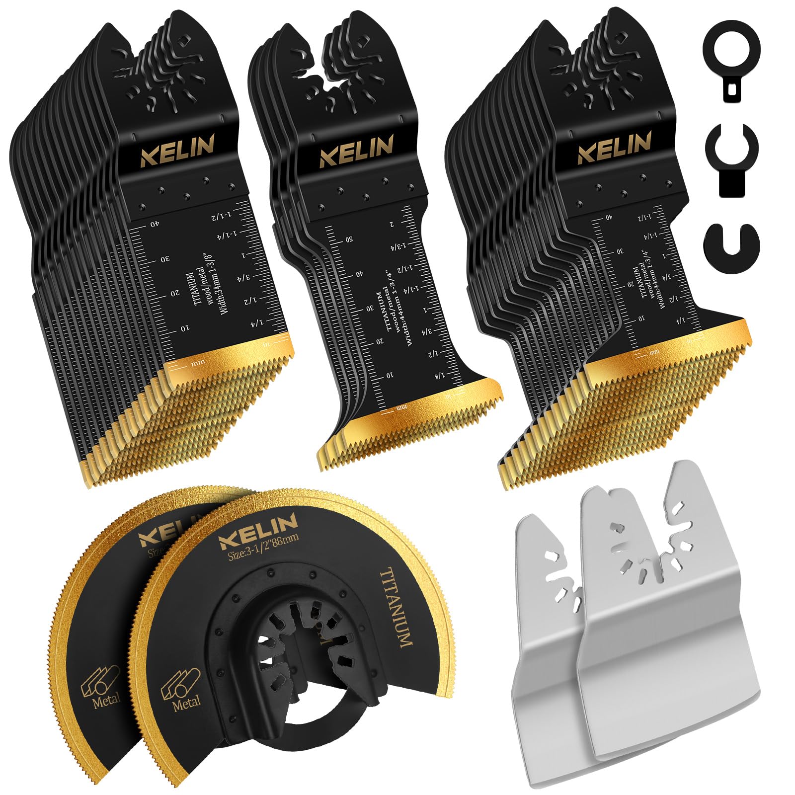 36 PCSTitanium Oscillating Tool Saw Blades with Stainless Steel Scraper and Semicircle Blades Kit, Universal Multi Tool Blades for Light Metal Sheet Pipe and Wood (NOT for Star Lock Interface)