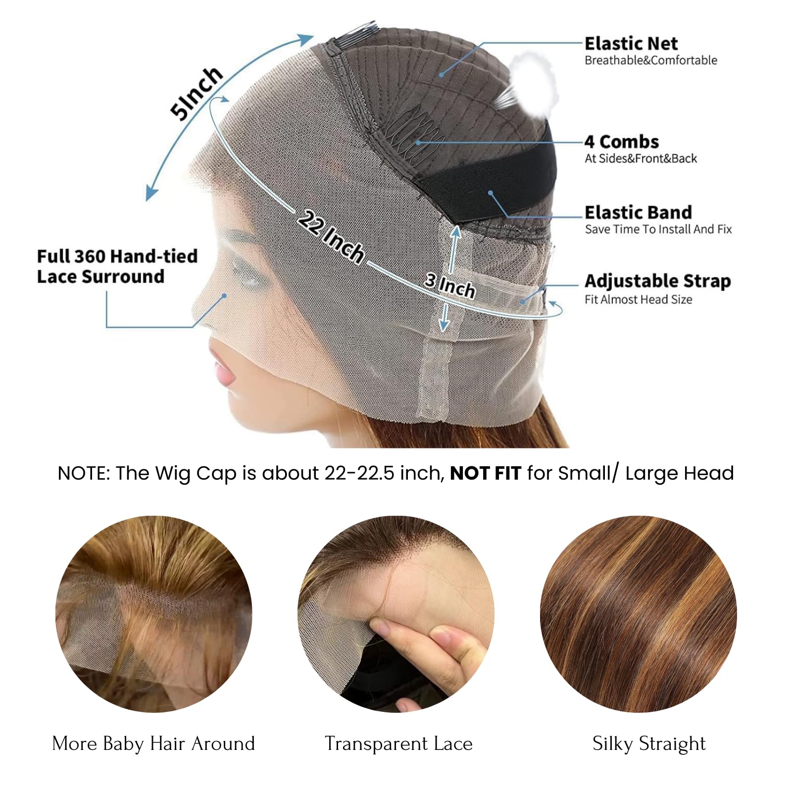 Color: 360 Lace Wig Highlight #4/27 Colored Straight