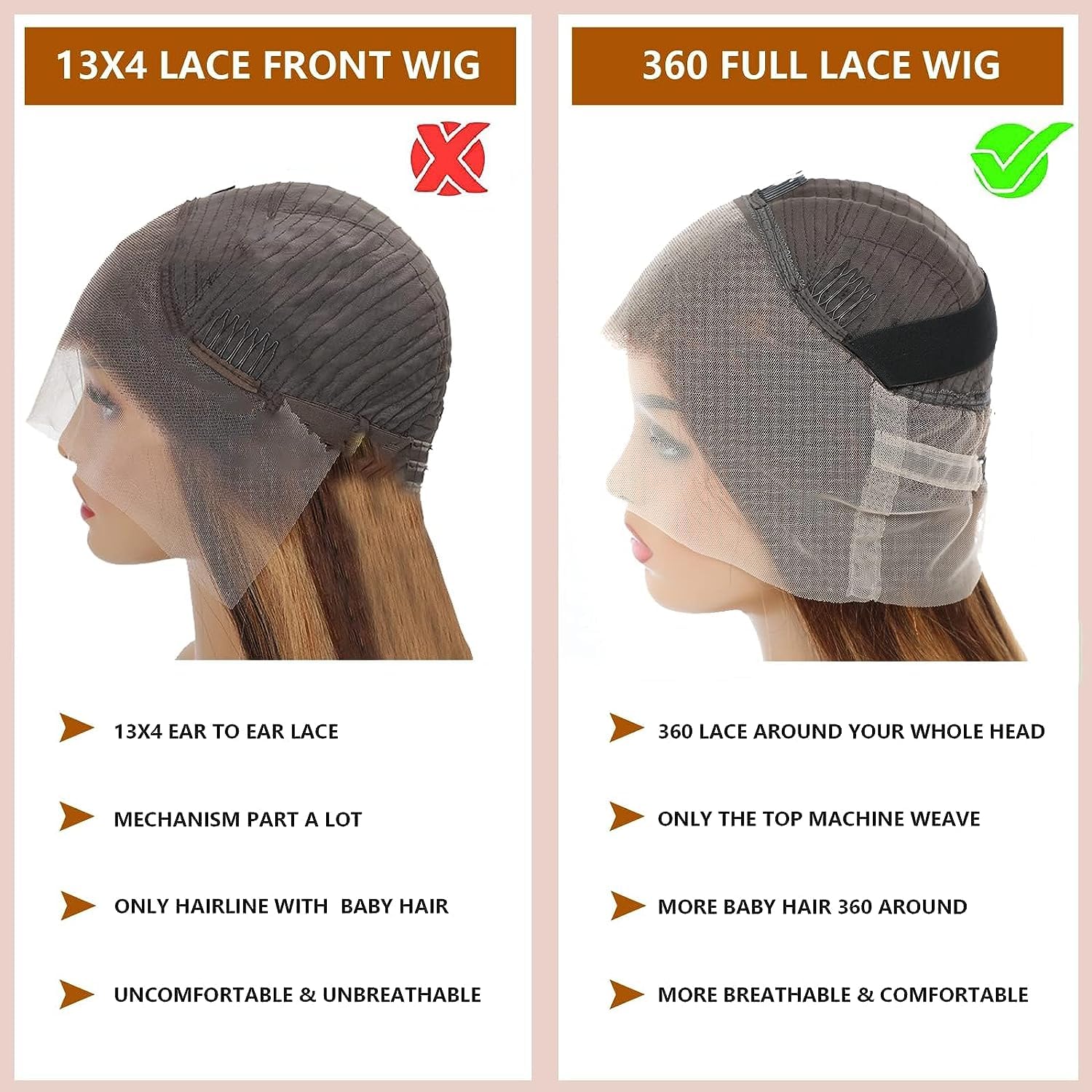 - 🧡【360 Lace Wig Advanced】360 Wig Lace Around Your Whole Head, Baby Hair Around, So The Wig Can Be Parted In Any Direction Such As High Ponytails Or Updos,this Invisible Lace Is Softer, And Lighter Than Others, Looks Like The Hair Is Growing Directly From Your Scalp