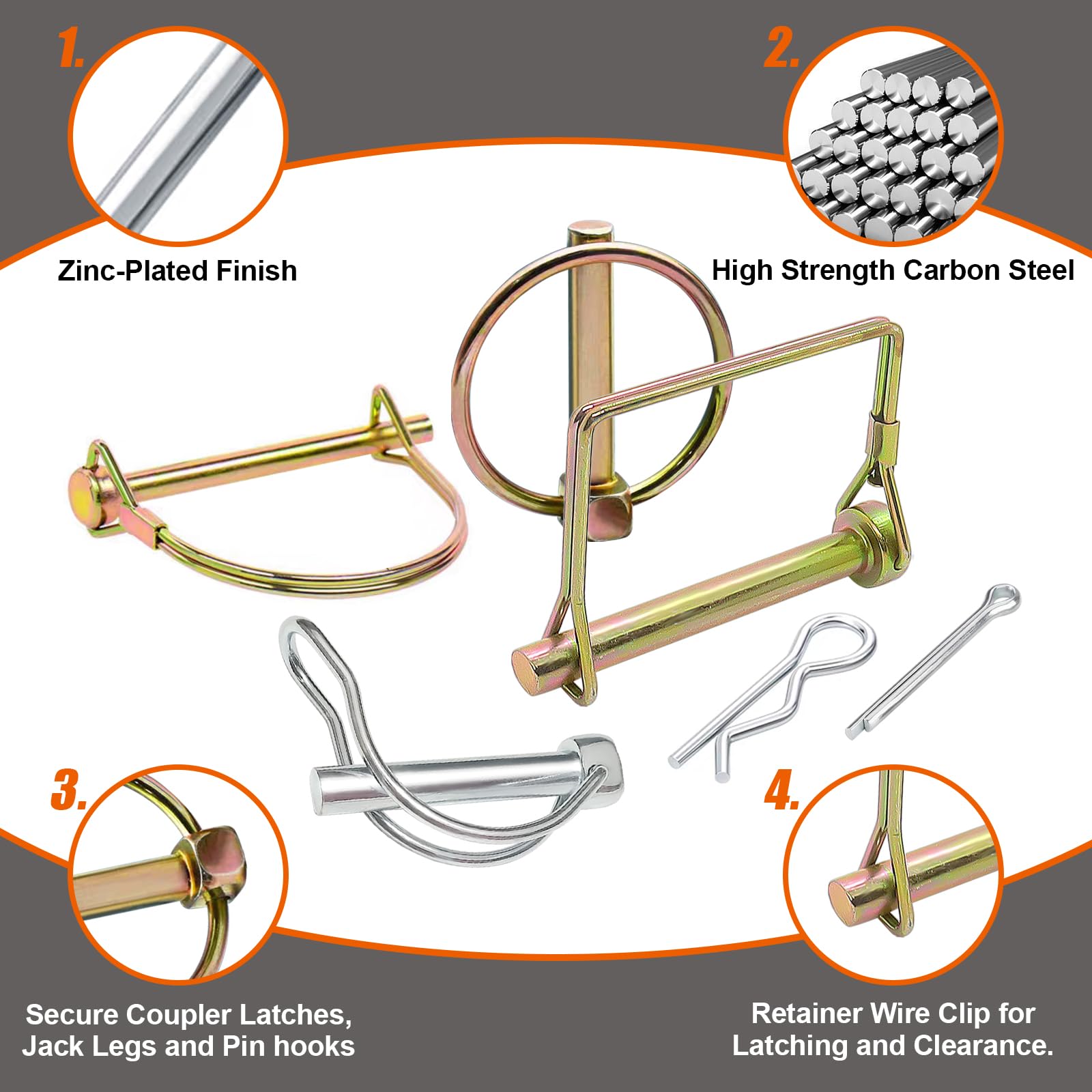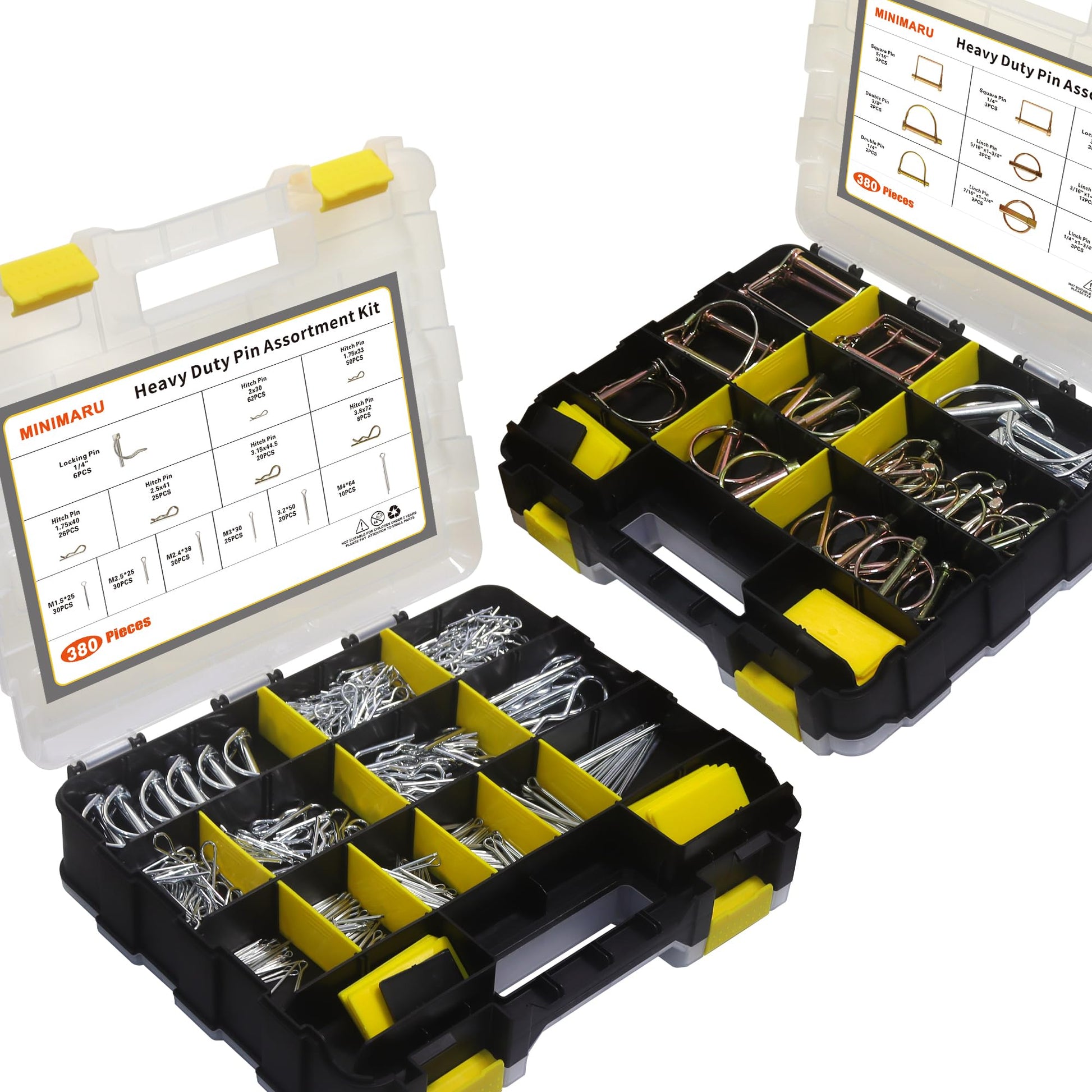 - Wide Application: 380 pcs various sizes Heavy Duty Pin Assortment Kit, for Trucks Trailers Tractors Mowers 3 Point Accessories, Farm, Lawn, Hitches and Garden