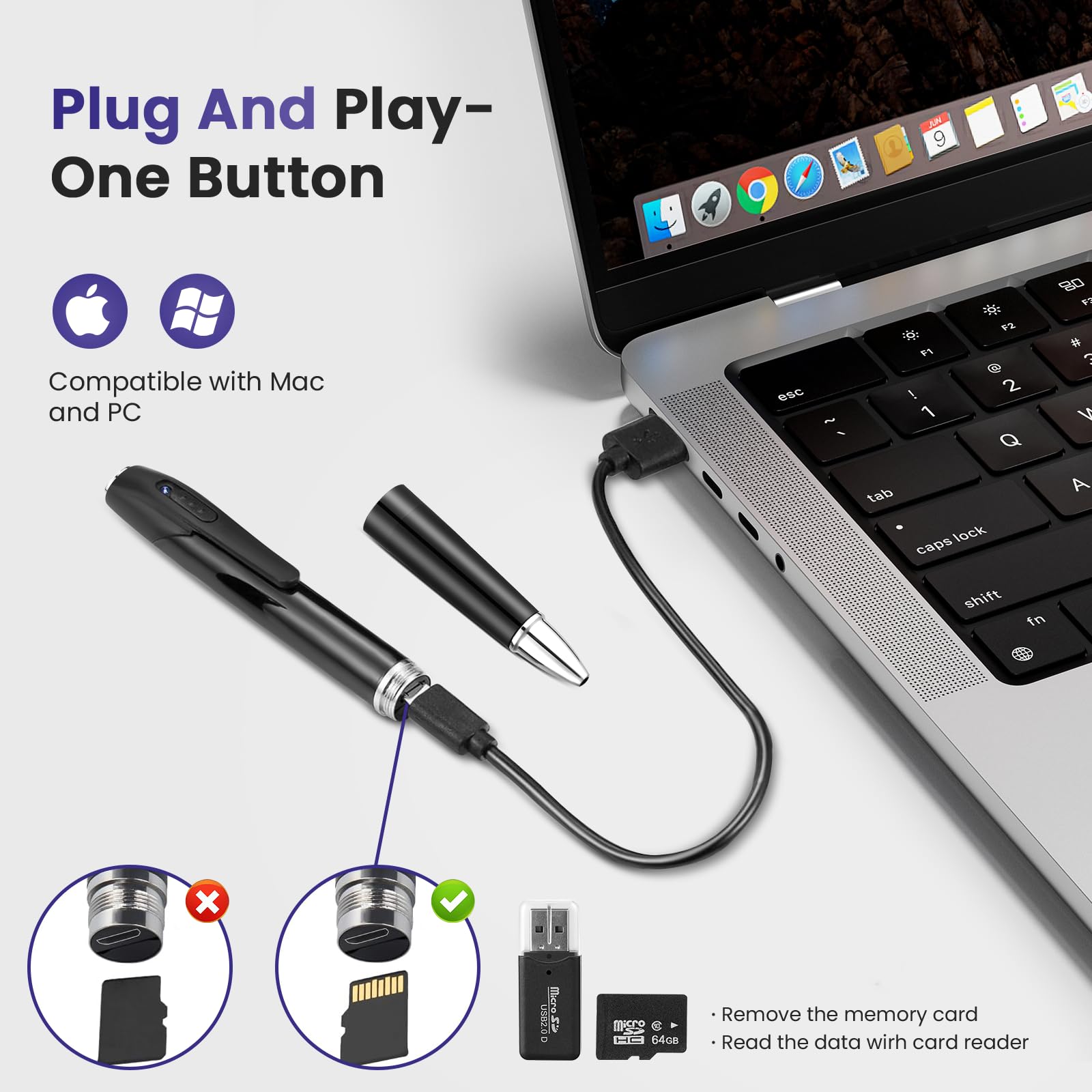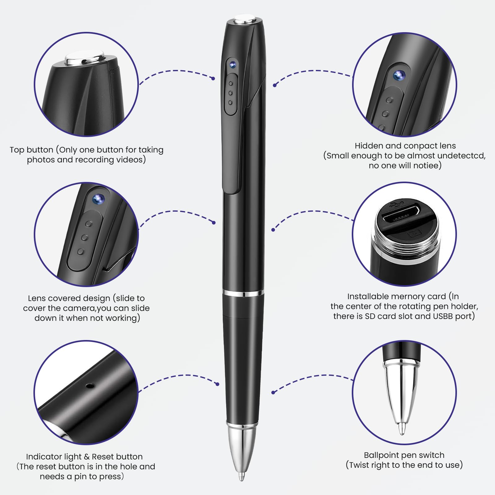 - 1080P Full HD Camera: Sleek, pen-sized design allows you to effortlessly capture 1080P HD videos or photos with a single click, anytime, anywhere.