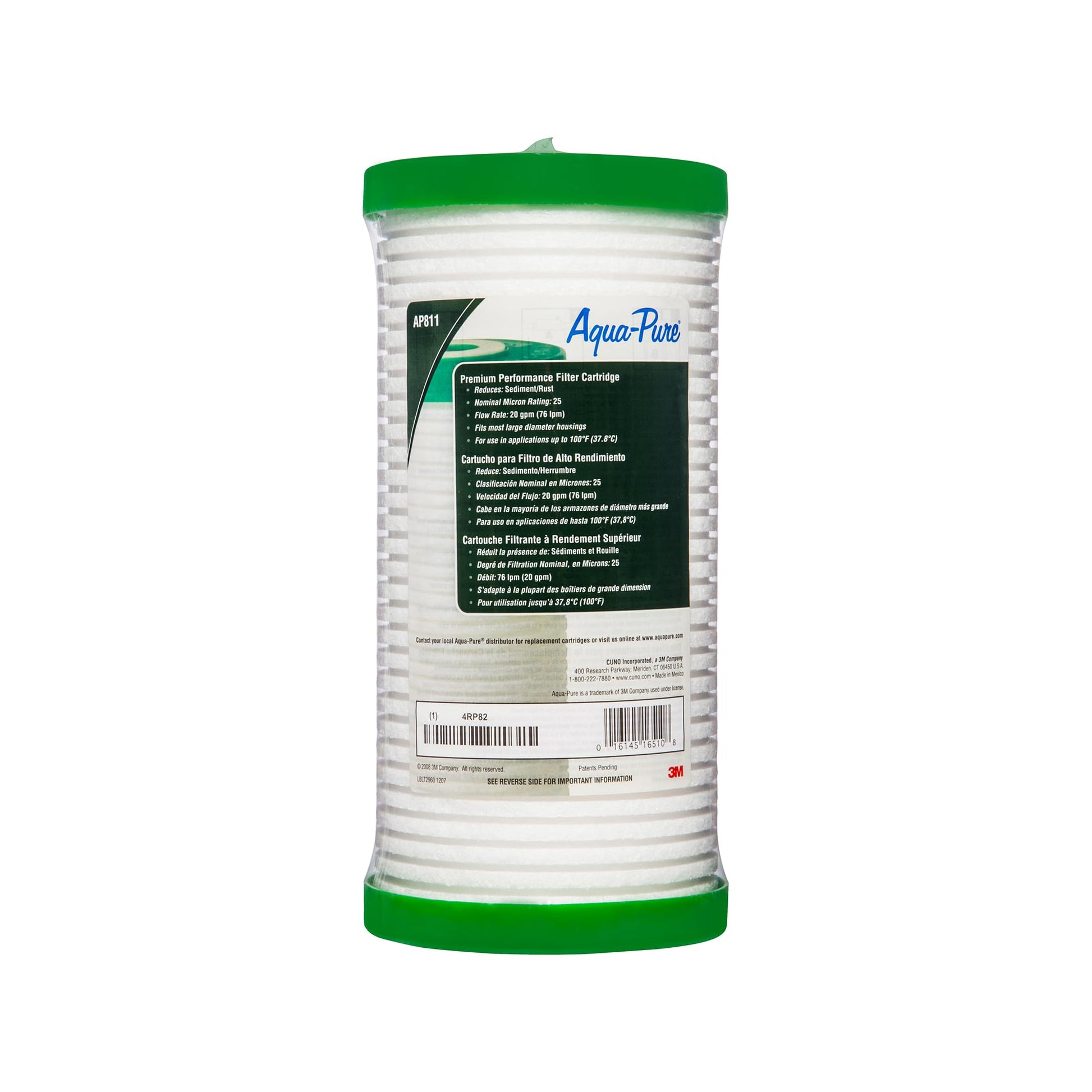 The 3M™ Aqua-Pure® Water Filter Cartridge AP811 helps to reduce sediment particles as small as 25 microns in size, as well as rust, providing clearer water for drinking, bathing, laundry, and other household uses. 3M’s exclusive Micro-KleanTM XL progressive porosity technology forces water through pores that become increasingly tighter, filtering smaller and smaller microscopic particles. The unique process allows the cartridge to effectively reduce sediment while providing a high flow rate. The cartridge lasts up to six months before replacement.
