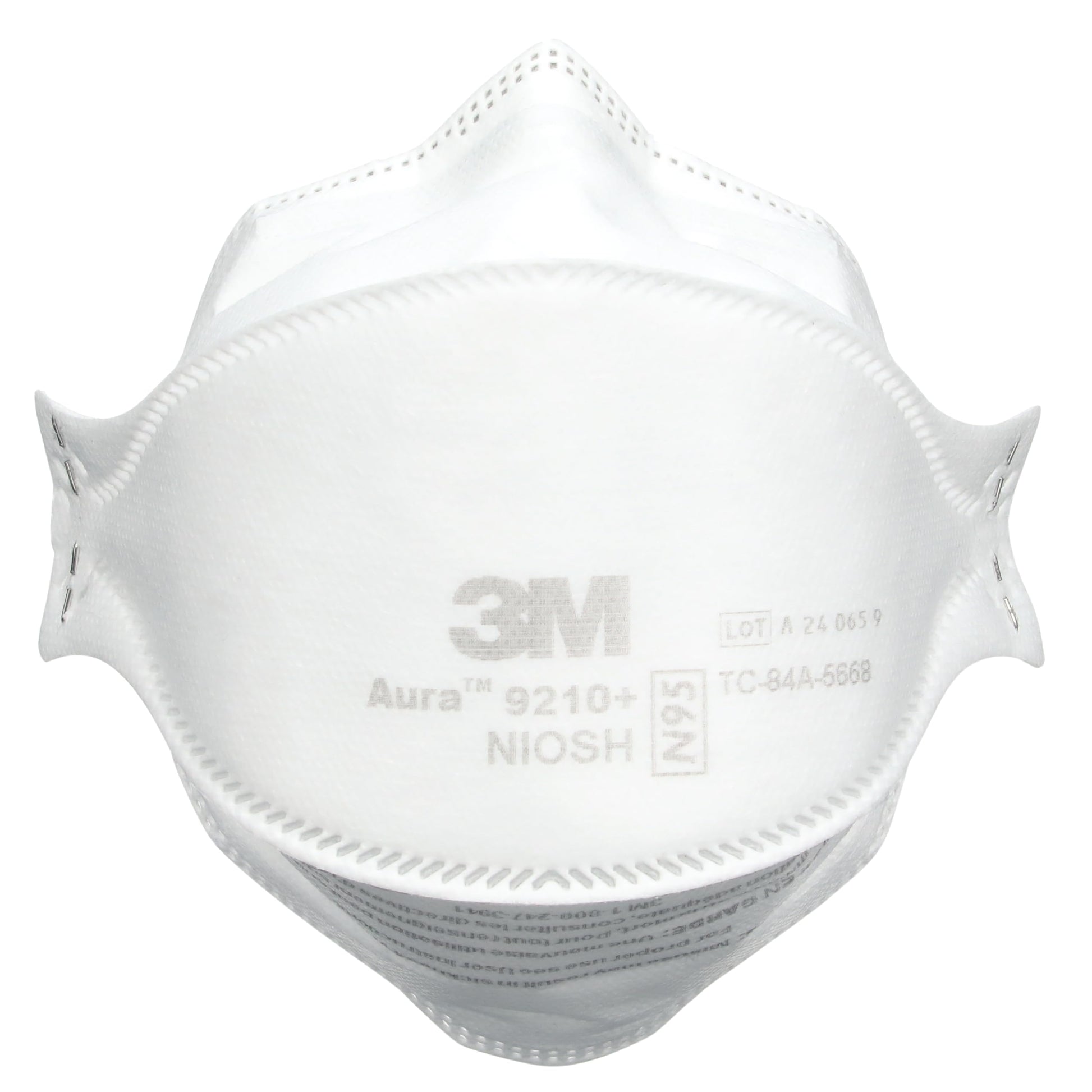 Details: The patented 3M Aura 9200+ Series Particulate Respirators are lightweight, disposable respirators designed to provide convenient, reliable respiratory protection against certain non-oil based particulates. 3M uses a variety of innovative technologies and features to help you meet your respiratory protection and comfort needs. NIOSH approved for at least 95 percent filtration efficiency against certain non-oil based particulates.