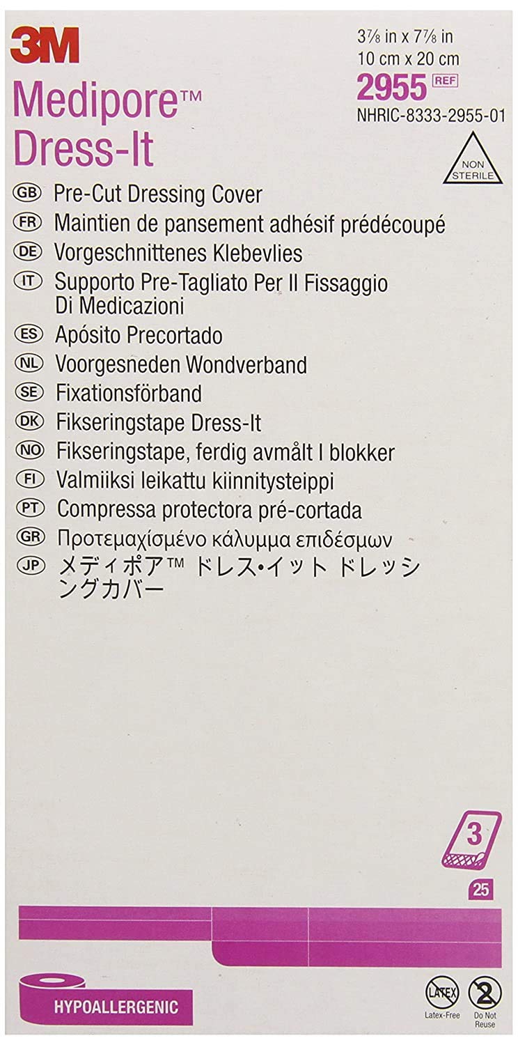 3M Medipore Dress-it Dressing Covers, 3 7/8" X 7 7/8", 3 Sheets/pad, 25 Pads/bx, Item 2955