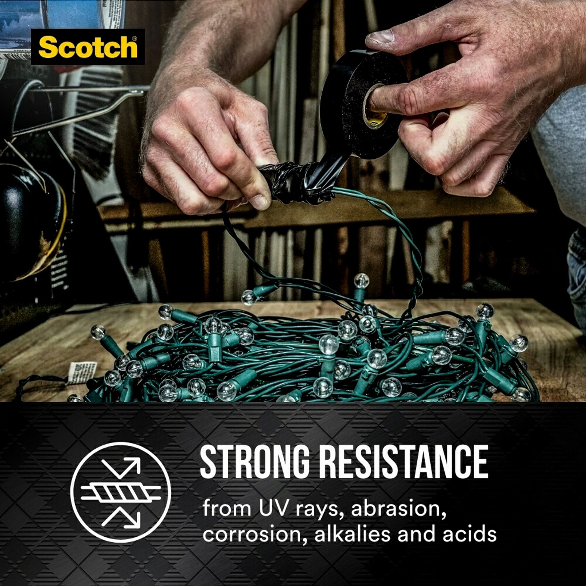 Details: For heavy-duty projects, Scotch Vinyl Electrical Tape Super 88 provides heavy-duty protection and insulation for electrical wires, cables and other components. A super- strong, rubber-based adhesive with an elastic backing delivers moisture-tight electrical and mechanical protection with minimal bulk. It’s ultimate versatility with exceptional durability — for your toughest jobs. USE FOR EASY HARNESSING of wires or cables. PROFESSIONAL-GRADE VINYL CONSTRUCTION for premium insulation. SUPERIOR RESISTANCE to to UV rays, abrasion, corrosion, alkalies and acids. HIGHLY STRETCHABLE with elongation up to 250%. SUPER CONFORMABLE for easier application and tighter seal. FLAME RETARDANT MADE IN THE USA; UL Listed and CSA Certified, RoHS 2011/65/EU Compliant