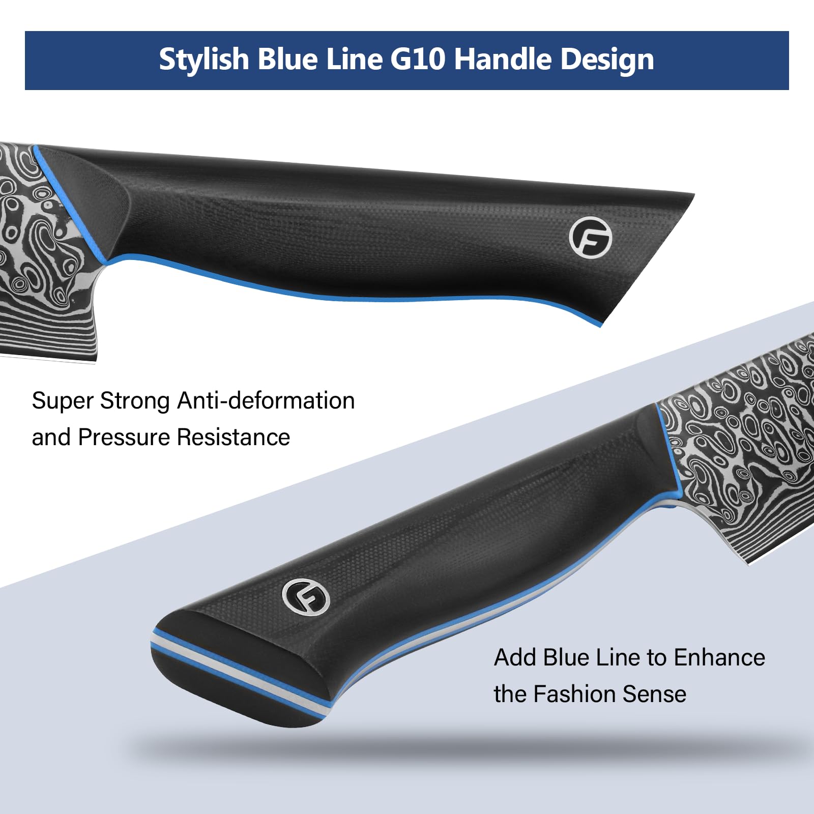 - 【Exquisite Design, Comfortable Grip】The handle of the knife set is designed based on ergonomic principles, fits the curve of the palm, and is comfortable to hold. The handle is made of G10 material, which is absolutely durable.