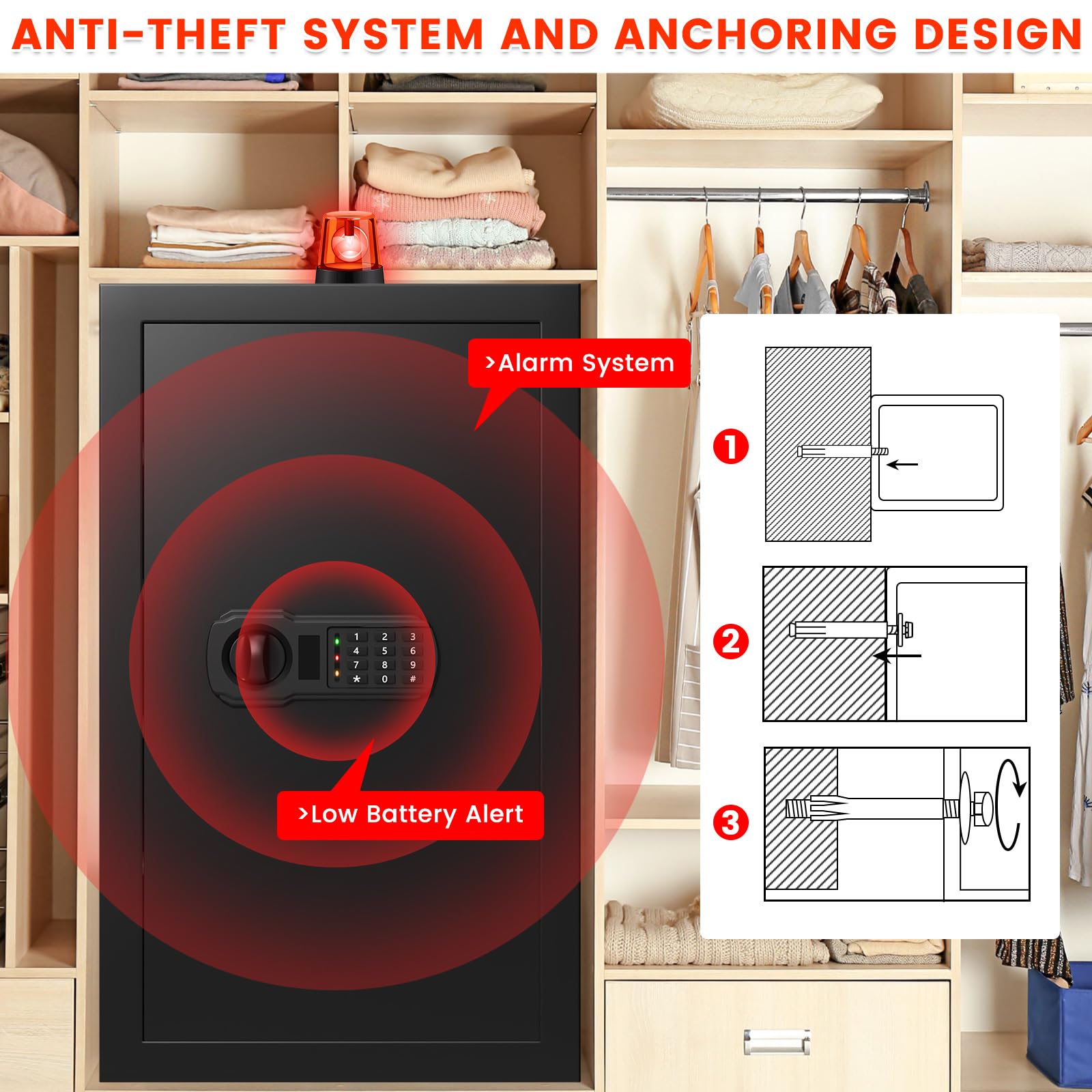 - Prevent Theft & Anchoring Design: Our safe box is made of high-quality steel with thickened 30 mm triple bolts and a 64 mm thickened front door, which is not easy to pry open after being locked. There are 2 pre-drilled holes on the back and bottom of the safe. If you want more security, it can be bolted to the wall or the floor. We have attached expansion screws to make the installation easier