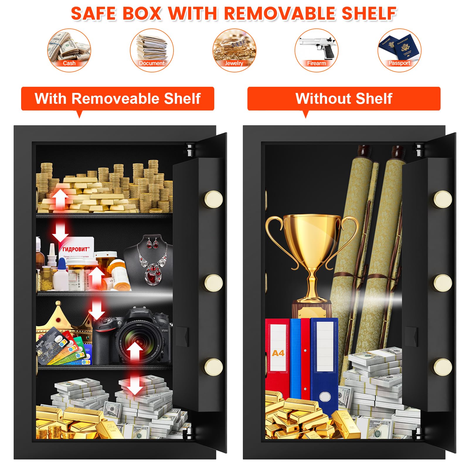4.5 Cubic Large Fireproof Safe Box with Fireproof Document Bag, Personal Security Home Safe with 3 Removable Shelf, Anti-Theft Lock Box for Documents Money Jewelry Valuables