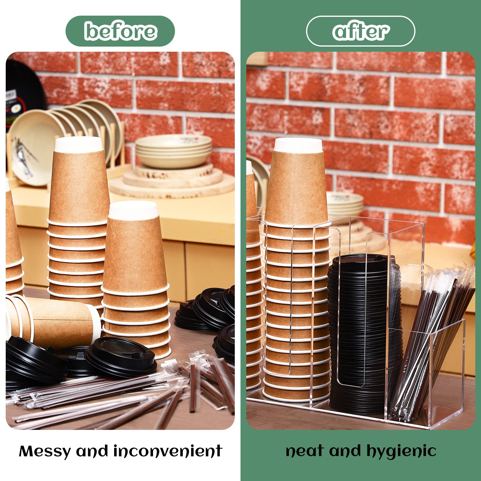 - Extensive Usage: the paper cup organizer can hold paper cups, plastic cups, coffee cups, conical cups, lids, straws, etc. and it is ideal for serving in restaurants, lounges, coffee stations, bars, buffets, kitchen cabinets, countertops, etc