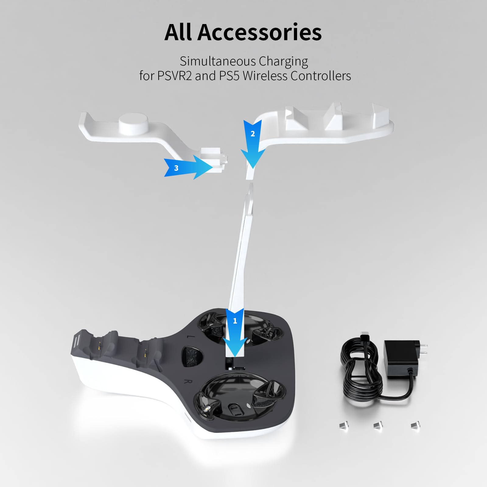 - 🔋What’s Included & Customer Support: We’re committed to providing you with high-quality PS VR accessories. Your package includes:1x PS5 VR2 Multifunctional Stand, 3x Magnetic Type-C Converters, 1x AC Power Adapter, 1x Product Manual, and 24/7 customer support. If you have any questions about the PSVR2 charging station, don’t hesitate to reach out. We’re here to assist you with friendly, reliable service.