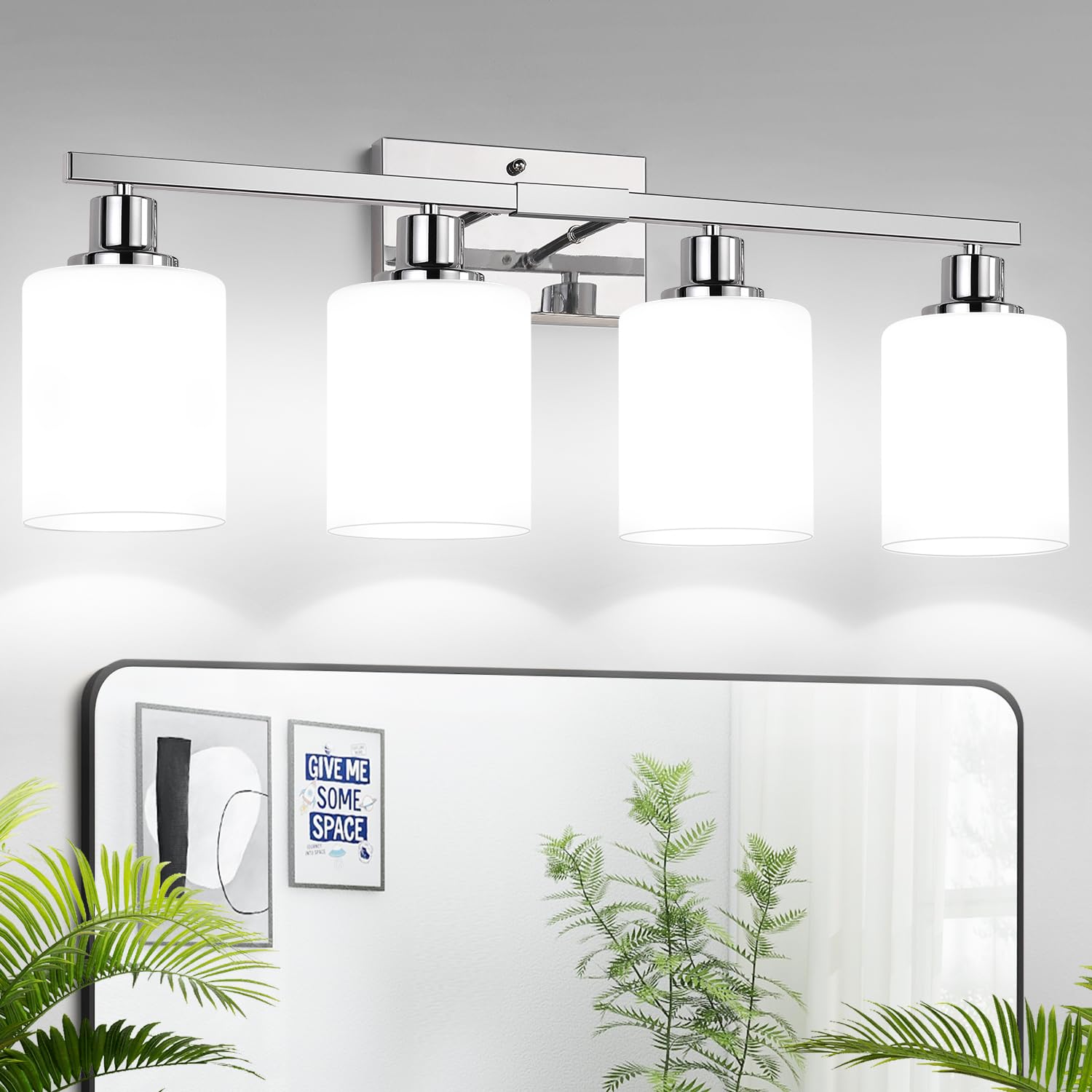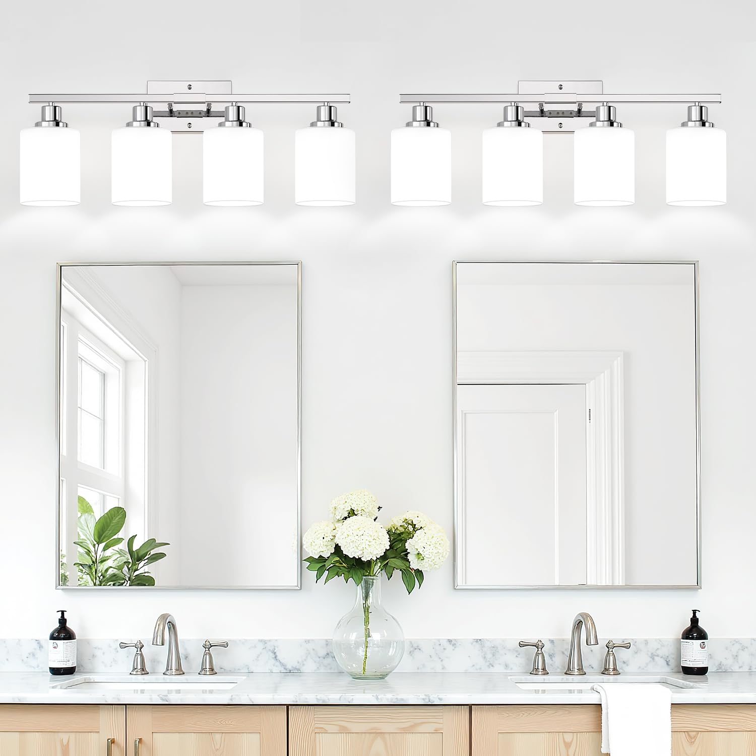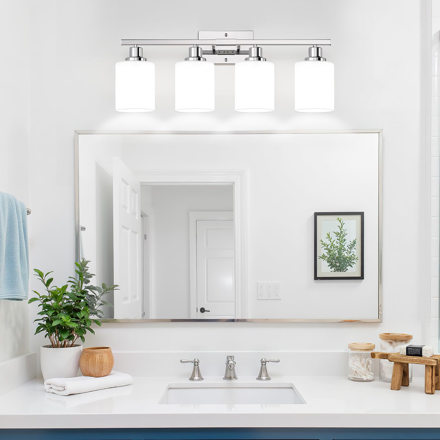 4-Light Vanity Light with Milky White Shades, Chrome Bathroom Lighting Fixtures Over Mirror, Modern Bathroom Wall Lamp for Mirror Living Room Cabinet Bedroom