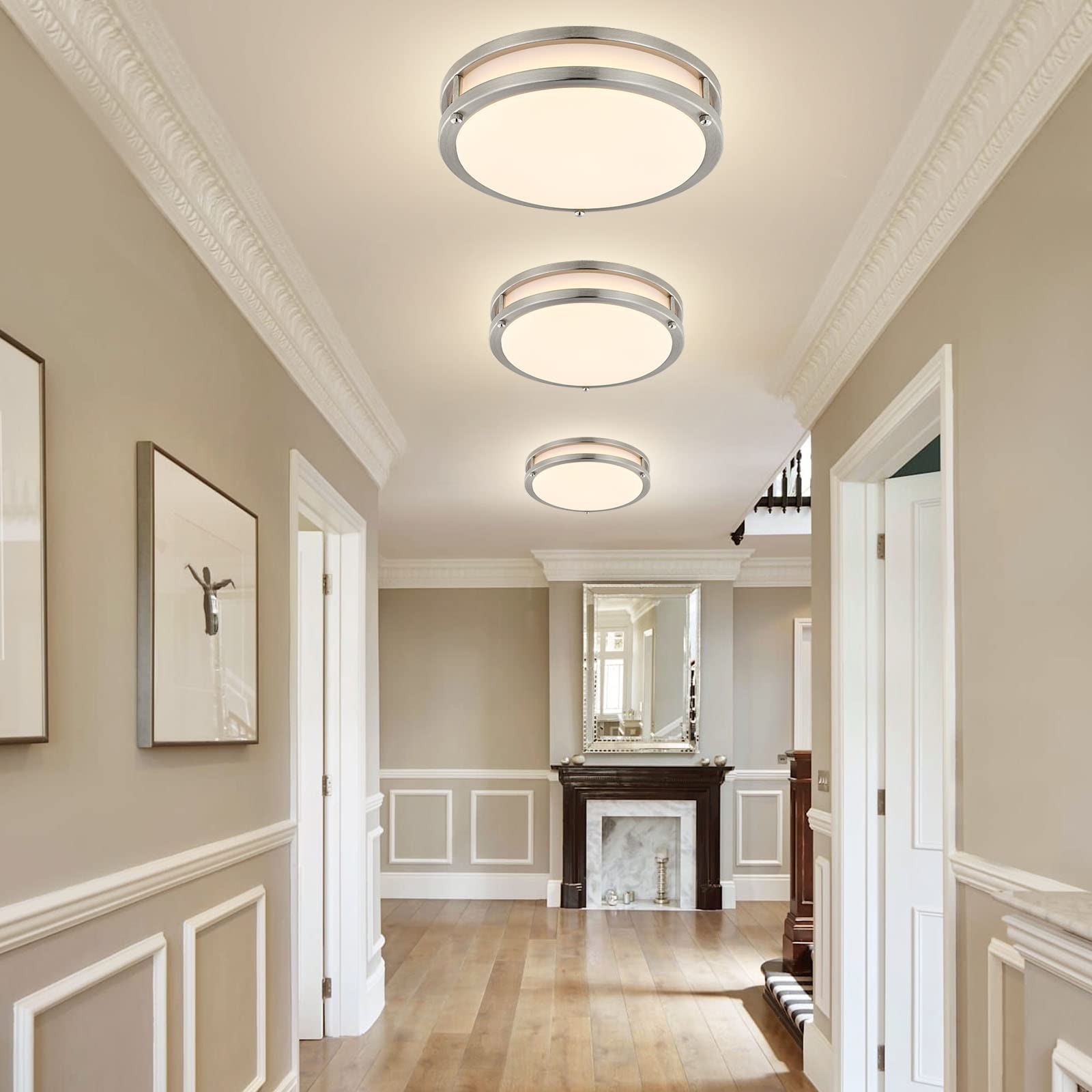 - ✔Sleek Modern Style ― Built with strong metal and lightweight plastic lens, the ceiling light is durable, anti-rust and able to evenly distribute the light. The special dual-ring design and bushed nickel trim bring a bit of character and interest to the light, instantly adding a contemporary feel to any place after installed.