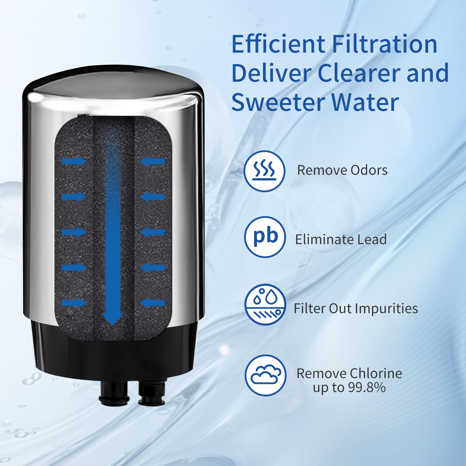 - MORE POWERFUL WATER FLOW】: Linsuely faucet filters meet the demands of high efficiency and fast filtration, no need to wait for quality filtered water. Using carbon rods is more efficient and does not need to be cleaned.