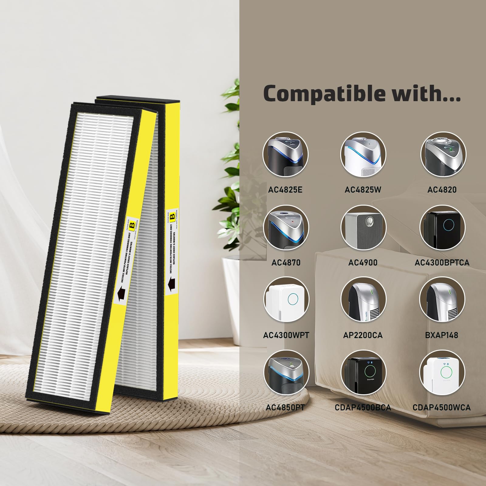 Details: 4 Pack FLT4825 HEPA Filter B Replacement Compatible with AC4825 AC4825E AC4300 AC4800 AC4880 AC4900 AC4850, 4 True HEPA Filters & 6 Activated Carbon Pre-filters