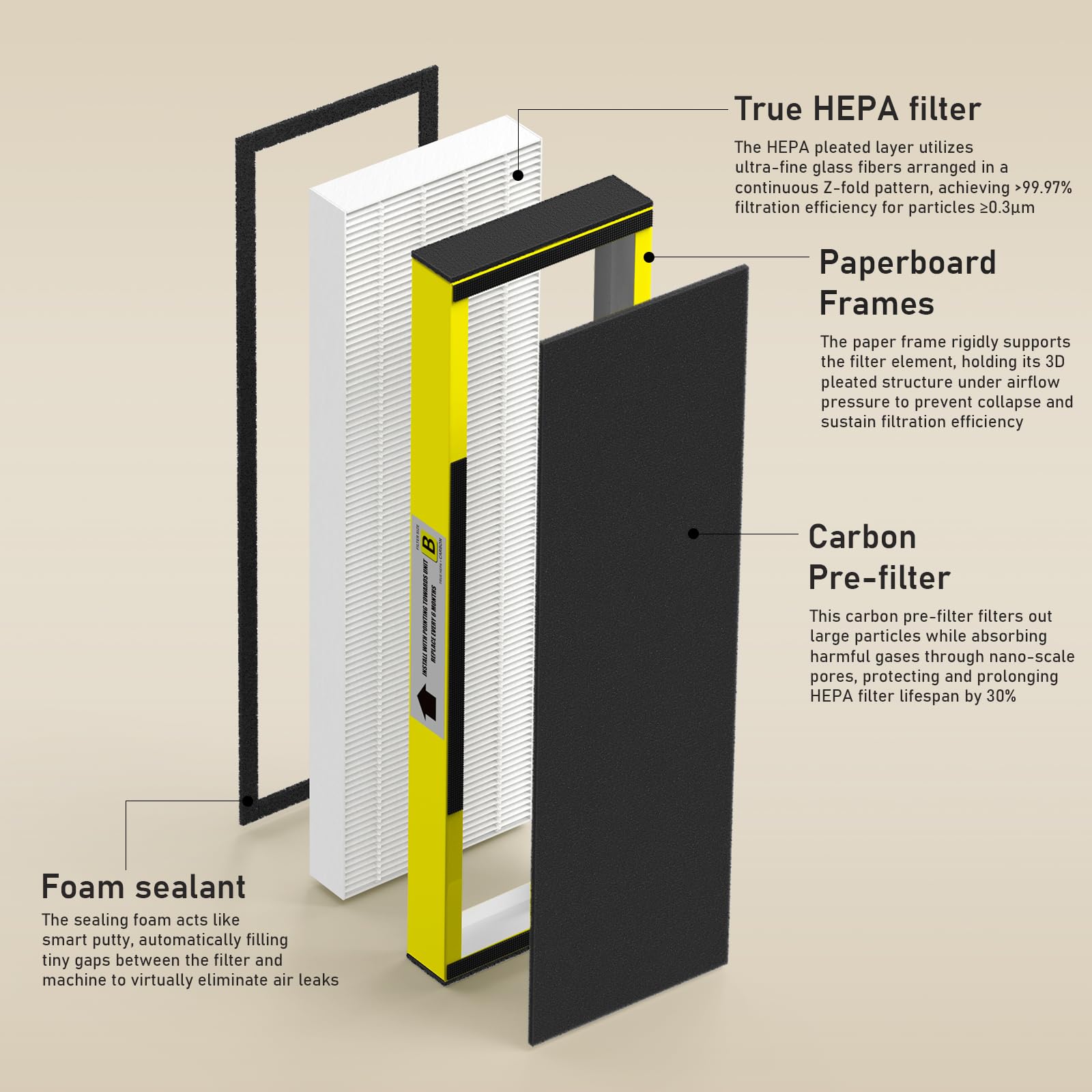 - Package includes 4 x H13 True HEPA Filter and 10 x Activated Carbon Filter. Maintaining optimal air quality in your home or office is crucial for your health and well-being. That's why it's essential to replace the filters in your regularly. We recommend replacing the HEPA filter every 6-8 months and the pre-filter every 2-3 months for optimal performance