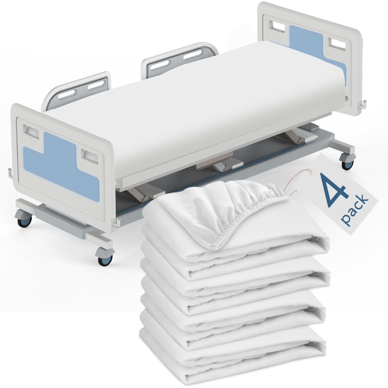 4 Pack Hospital Bed Sheets 36" x 80" x 9", Hospital Bed Fitted Sheets for Home & Hospital Care Beds, Soft Hospital Sheets with Elastic All Around, White
