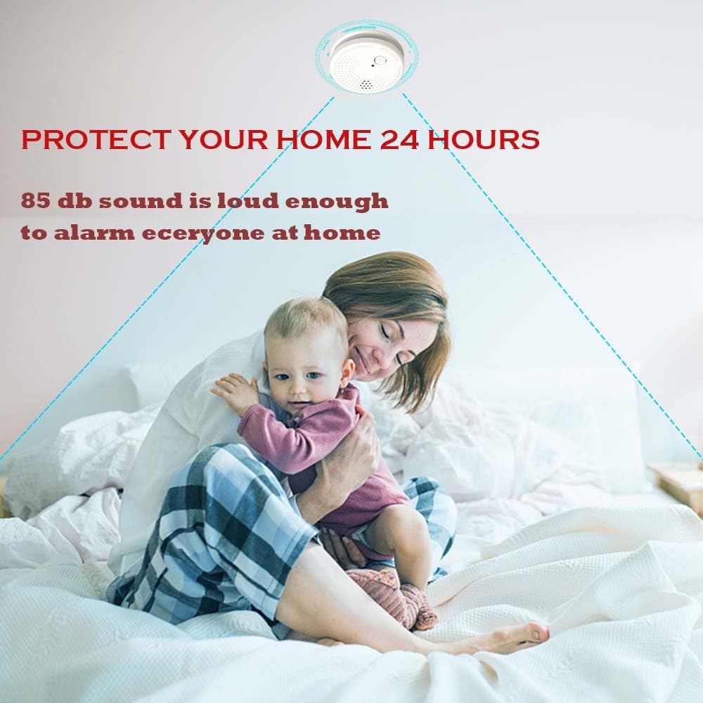 - Accurate & Sensitive: The small size smoke alarm adopts photoelectric technology to detect smoke, which is more sensitive to light smoke and slow smoldering fires and more quickly to remind you. Keep your home safe 24/7