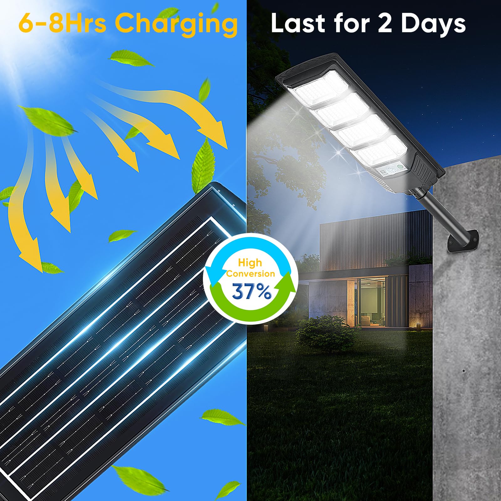- 【0 Electricity Bill& 37% Efficient Panel】Adopting the innovative solar panel solution, our solar panel can make use of sun power with conversion up to 37% while normal ones still use 25% conversion rate solution. It means the solar lights for outside can charge faster and lasting longer with 2 batteries, fully recharged within 4-6 hrs on a sunny day, work without any cost and are super energy efficient and convenient.