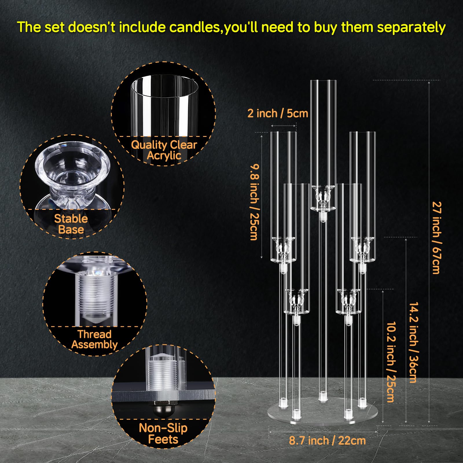 4 Set 5 Arms Acrylic Candelabra Centerpieces for Wedding Table Decorations,Clear Candlesticks Holder with Acrylic Shade for Valentine's Day Dinner Party Fireplace Gift Fit LED Candle
