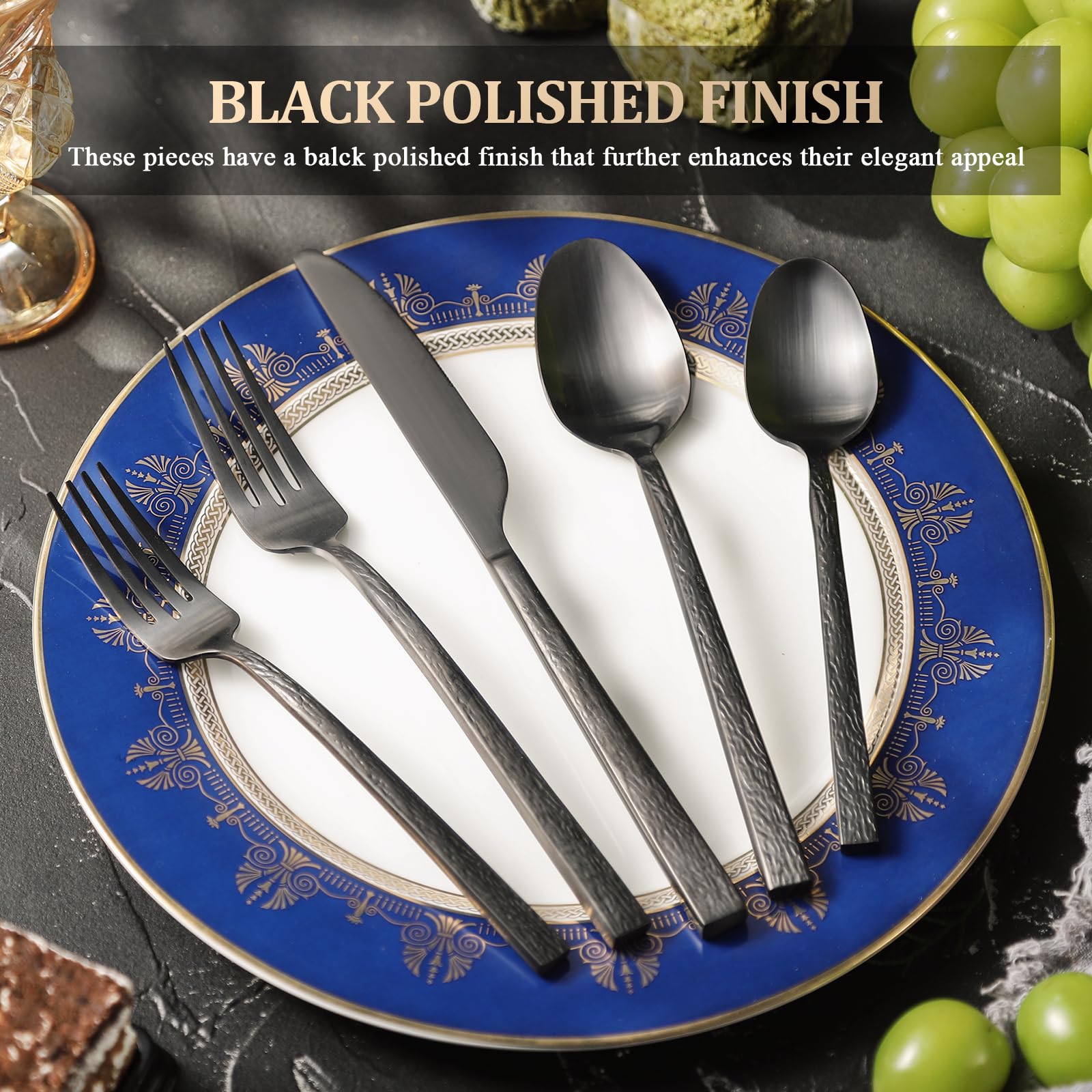 - 40-PIECE BLACK SILVERWARE SET FOR 8--This 40-piece set includes eight 5-piece place settings,includes 8 dinner forks, 8 salad forks, 8 soup spoons, 8 dinner knives and 8 teaspoons.This stainless-steel flatware collection brings brilliant style to everyday meals and special occasions.