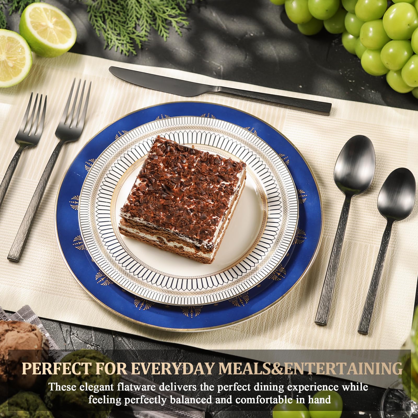 40-Piece Black Hammered Silverware Set for 8,Forged 18/10 Stainless Steel Flatware Set,Premium Food-Grade Cultery Set with Unique Ripple Design Handles ,Heavy Duty Tableware Set,Service for 8