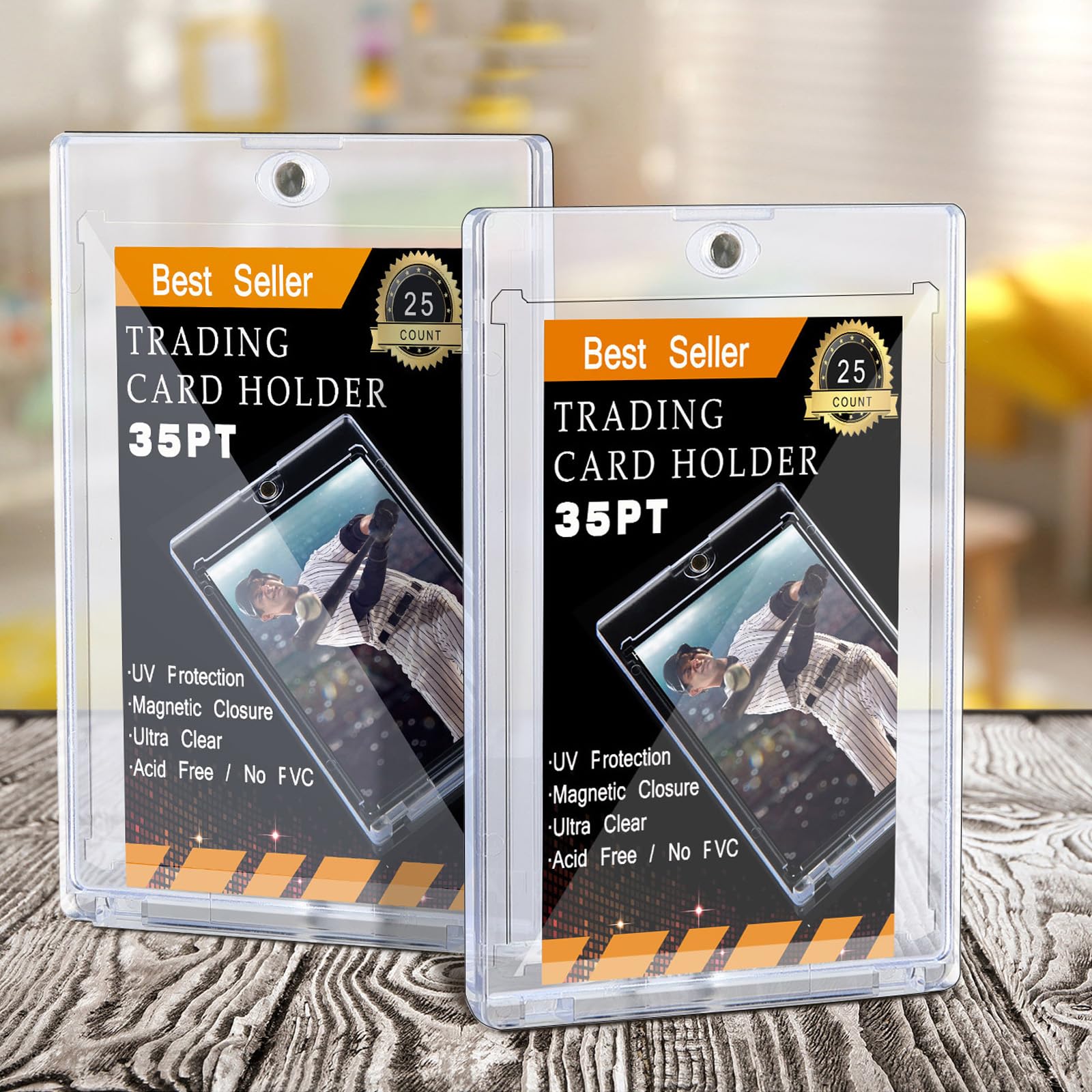 - Size design: the 35pt magnetic card holder fits the standard trading card size 2.5 x 3.5 inches, up to 35-point thickness, which open easily to insert your cards, compatible with baseball card, football card, sports card and more, it is a nice choice whether being applied for playing cards or collecting cards
