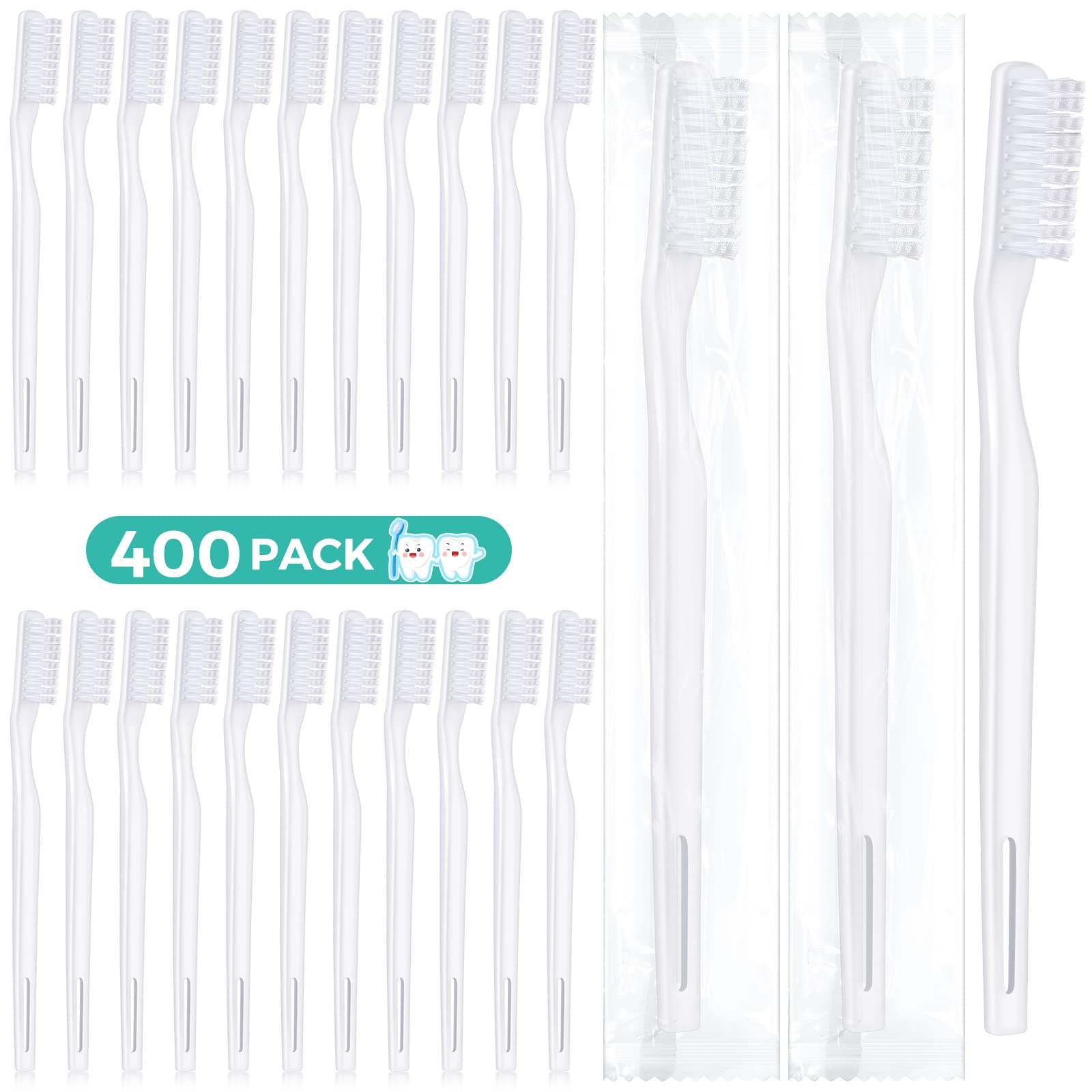 400 Pack Individually Wrapped Disposable Toothbrush Hard Bristle Adult Toothbrush Manual Tooth Brush Travel Toothbrushes Single Use Toothbrush for Homeless Women Men Hotels Guest Rooms, White