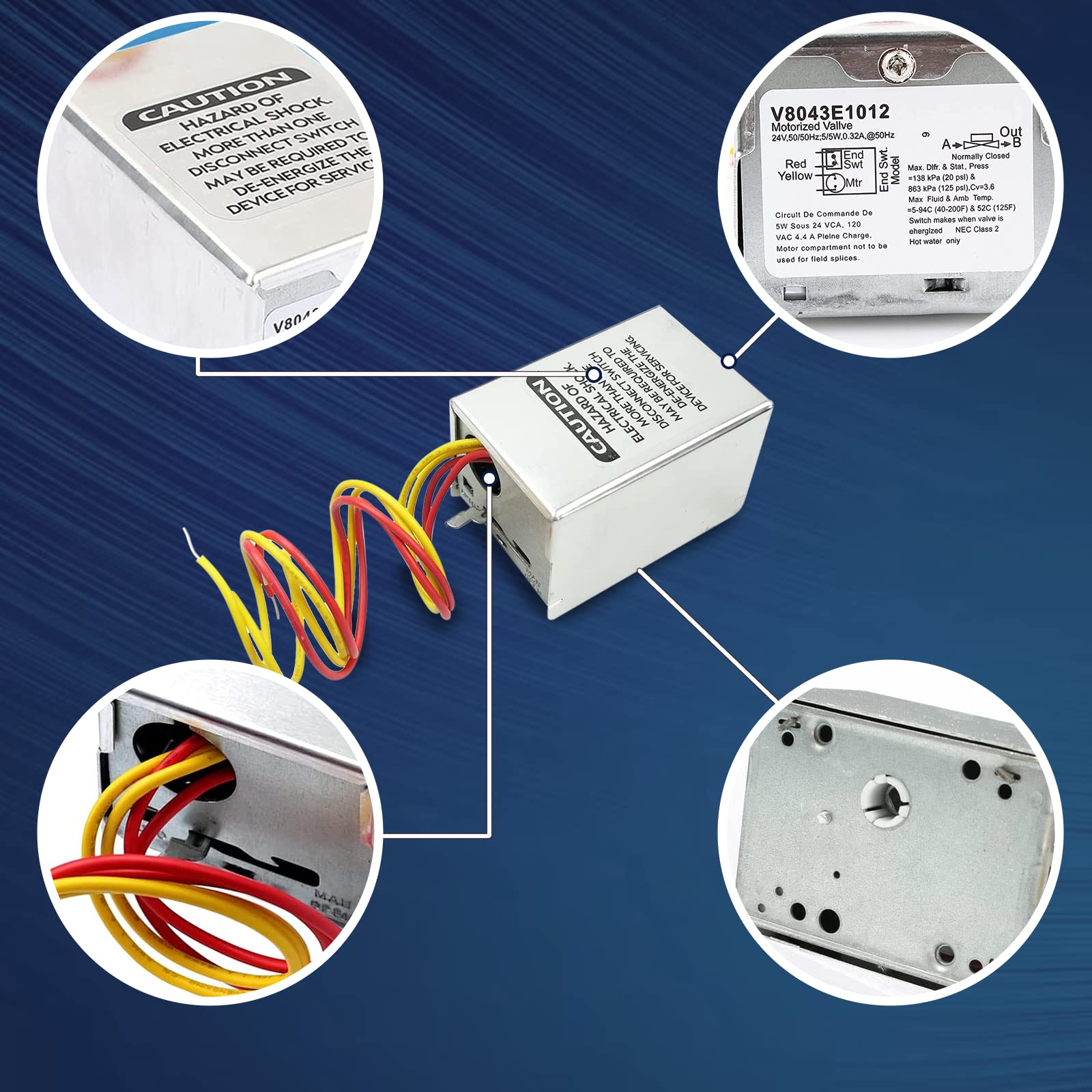 - 【Upgraded Feature】: V8043E Zone Valve Power Heads are Produced By Professional Zone Valve Manufacturers, is an accessories replacement to circulate water and control the flow of hot water, The zone valve motor With a 24V design and a maximum ambient temperature rating of 125 degrees Fahrenheit for extending the life of heating system.