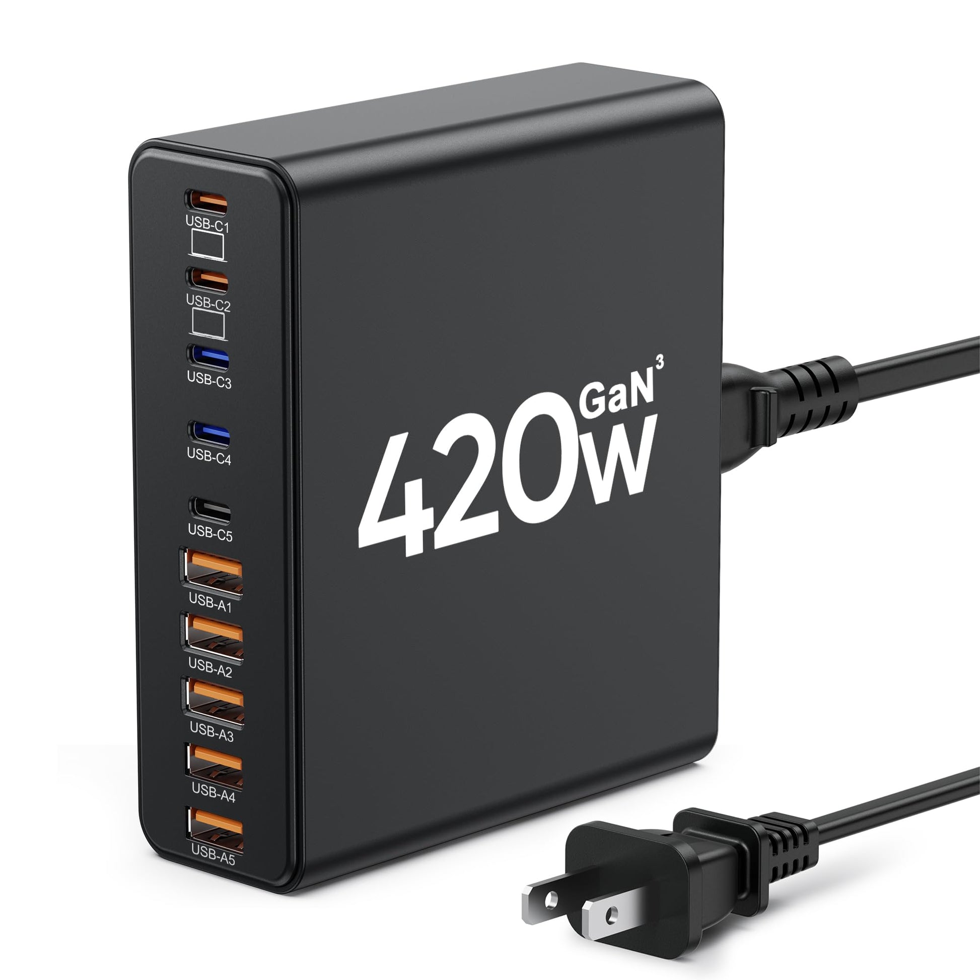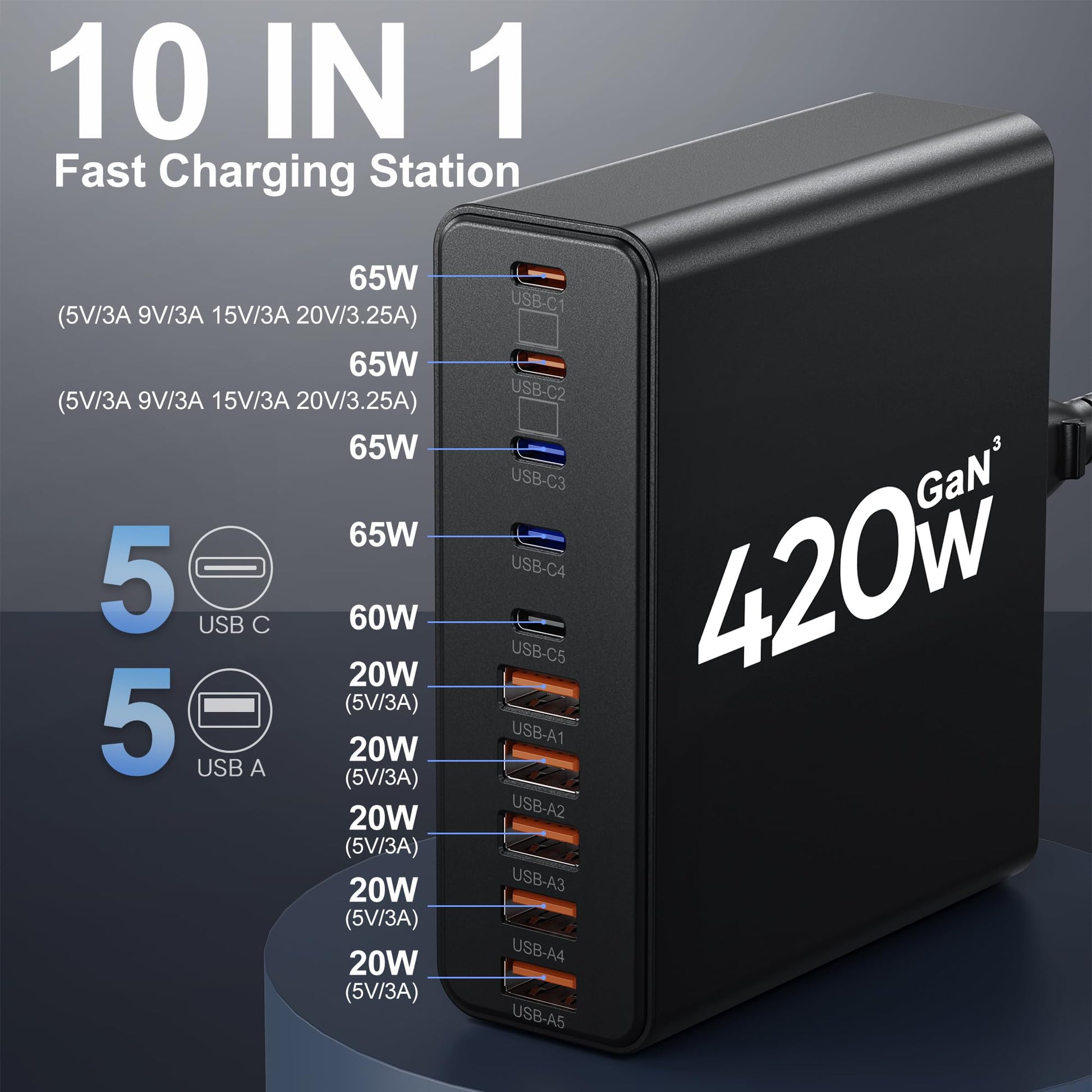 420W USB C Charger Block,10-Port Charging Station GaN Fast Charging Type C & USB A Wall Charger Adapter for MacBook Pro/Air,iPhone,iPad,Dell XPS,Samsung Galaxy(Black)