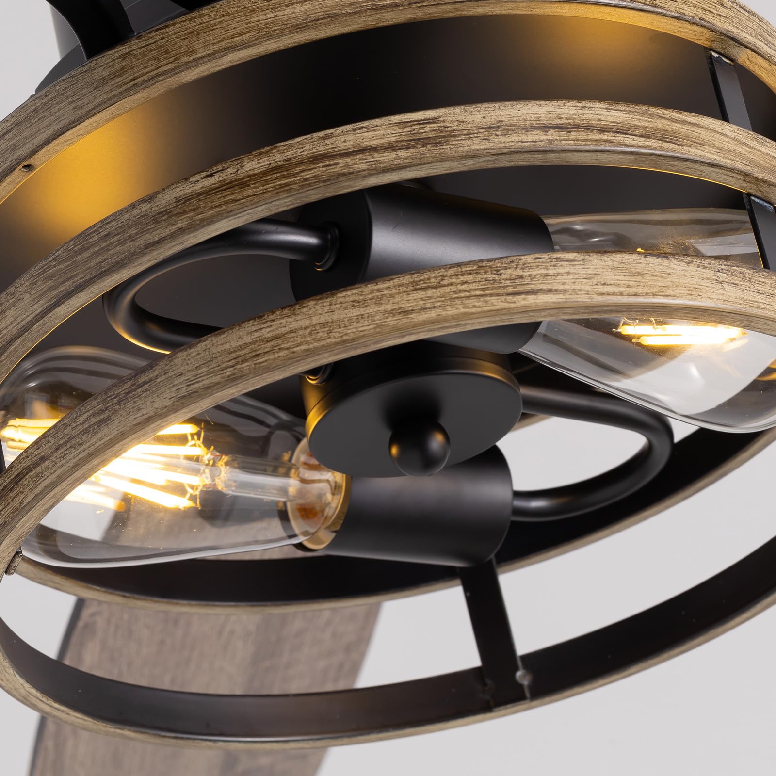 - Reversible DC MOTOR: The black caged ceiling fan with light (bulbs not included) has a quite reversible DC motor, allowing you to change the direction on remote controller from downdraft mode during the summer to updraft mode during the winter. It operates at less than 30dB, ensuring minimal noise. Additionally, it is highly energy-efficient, consuming up to 70% less power than AC motors.On AC motors, you have to climb a ladder and push the button on the ceiling fan motor cover to realize the forward and reverse functions.