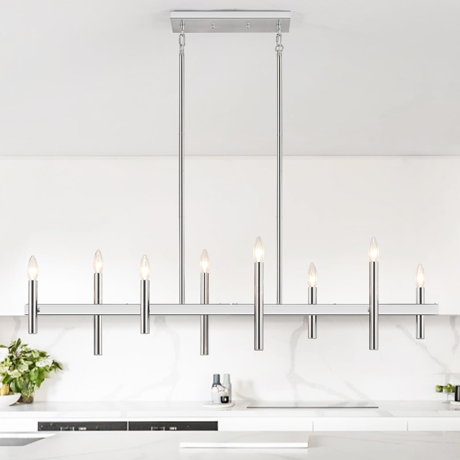 47” Brushed Nickel Chandelier Kitchen Island Lighting 8-Light Linear Pendant Light Fixtures Contemporary Modern Chandeliers for Dining Room Over Table Hanging Light for Living Room Bar Pool Table