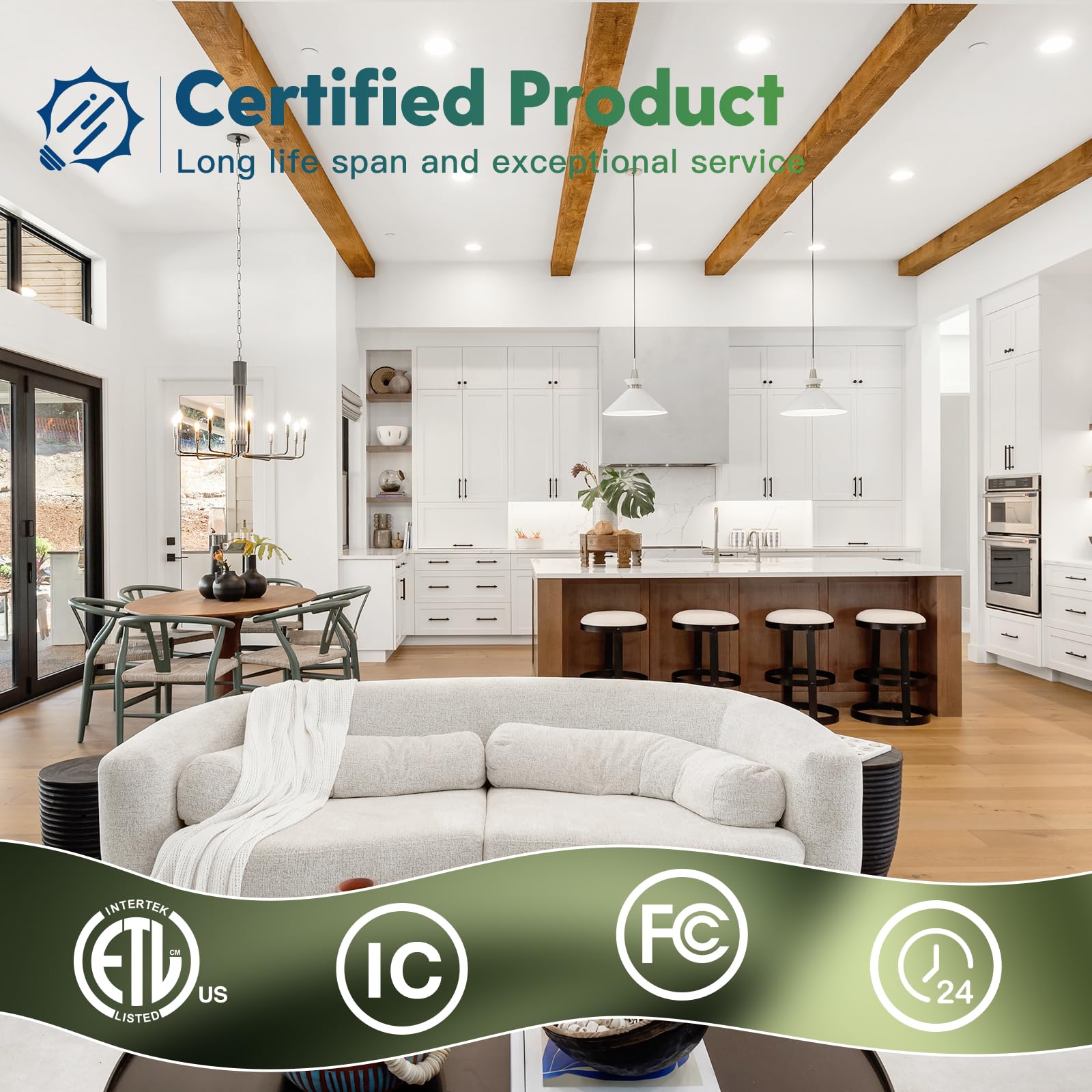 - Trustworthiness: This canless LED recessed light is IC rated, ETL & FCC certified. It is permitted to be in touchwith insulations in ceilings, meaning the junction box is thermally protected. Our customer support team will also response to your cases within 24 hours.