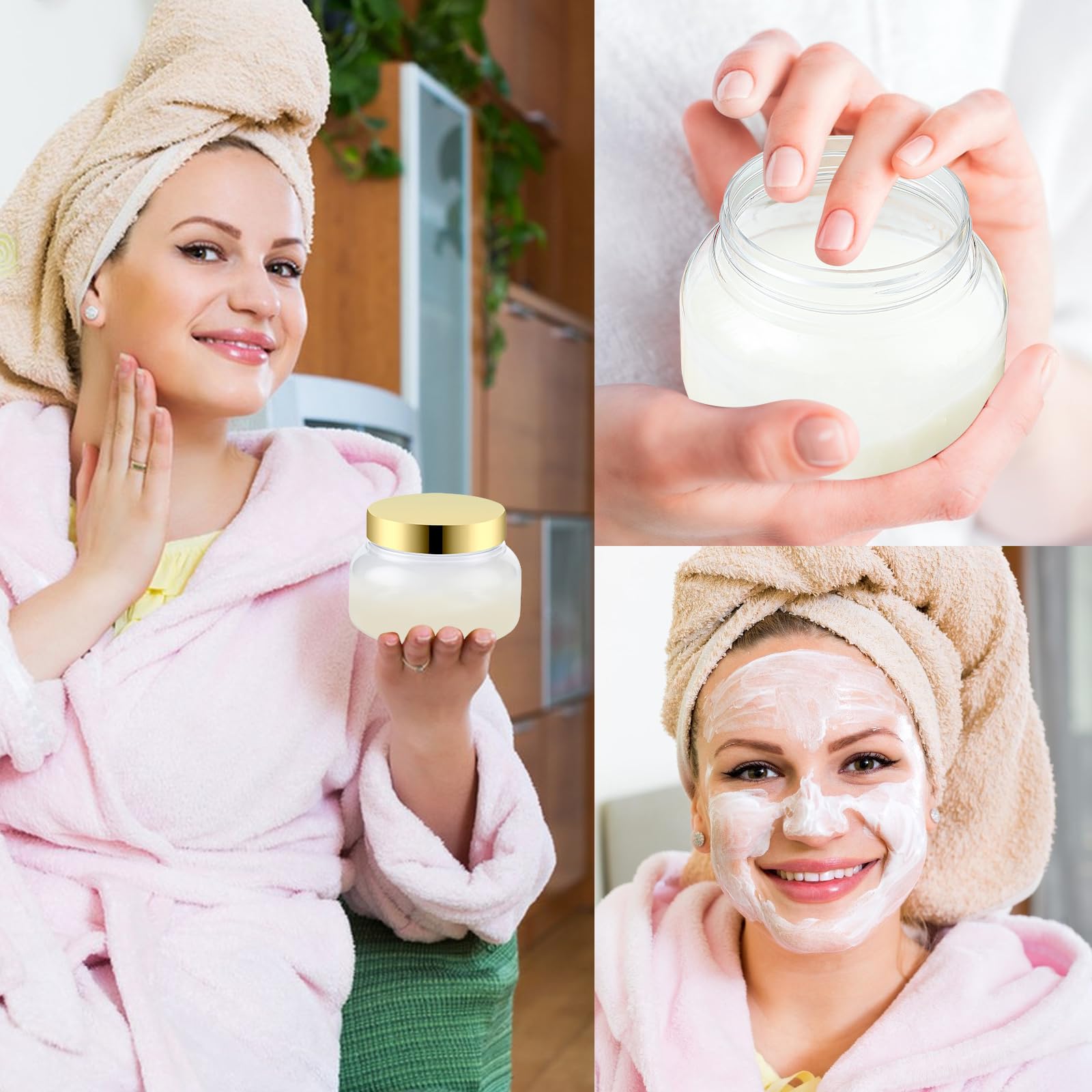 - [Widely Used]:This cosmetic bottle with lid is very versatile, excellent storage jars for creams, emulsions, body scrubs, body butter, and other personal care, and is also suitable for storing items such as dry food, nuts, spices, flour, cute candy, or other handcrafted items.It is not recommended to install higher temperature objects.