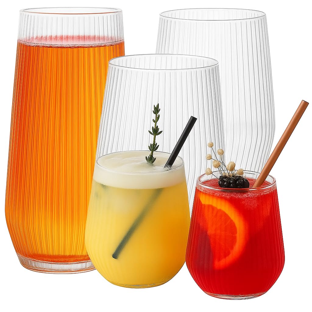 - Two Sizes in One Set: Includes 24 stemless 9 oz champagne flutes and 24 12 oz cups, offering versatile use for serving wine, champagne, whiskey, cocktails, and more.